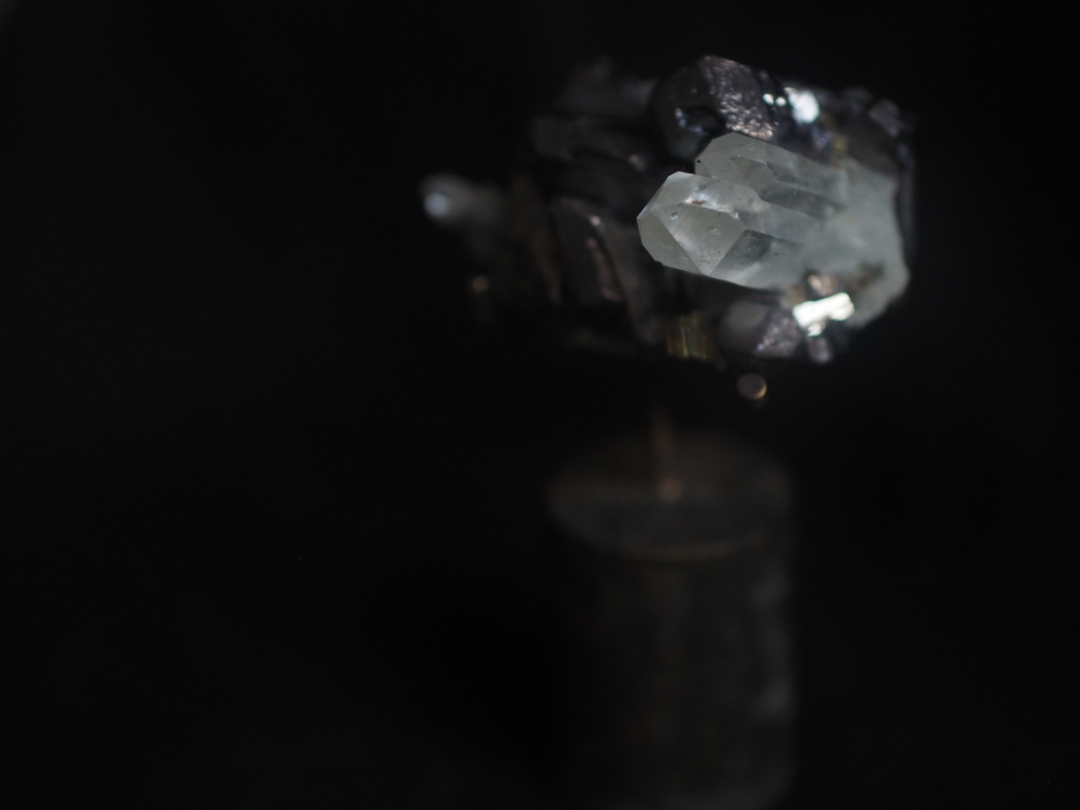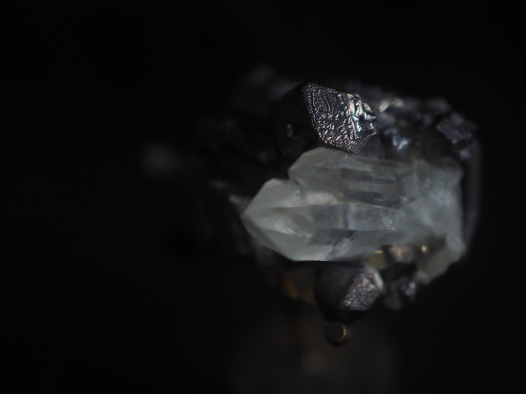 表情豊かな pyriteとquartzの共生原石を、真鍮を用いて、