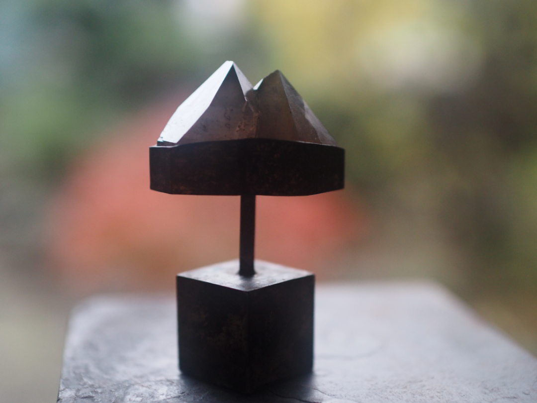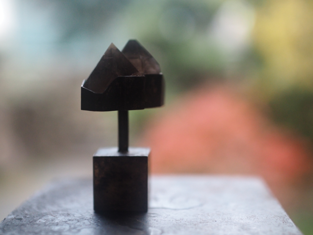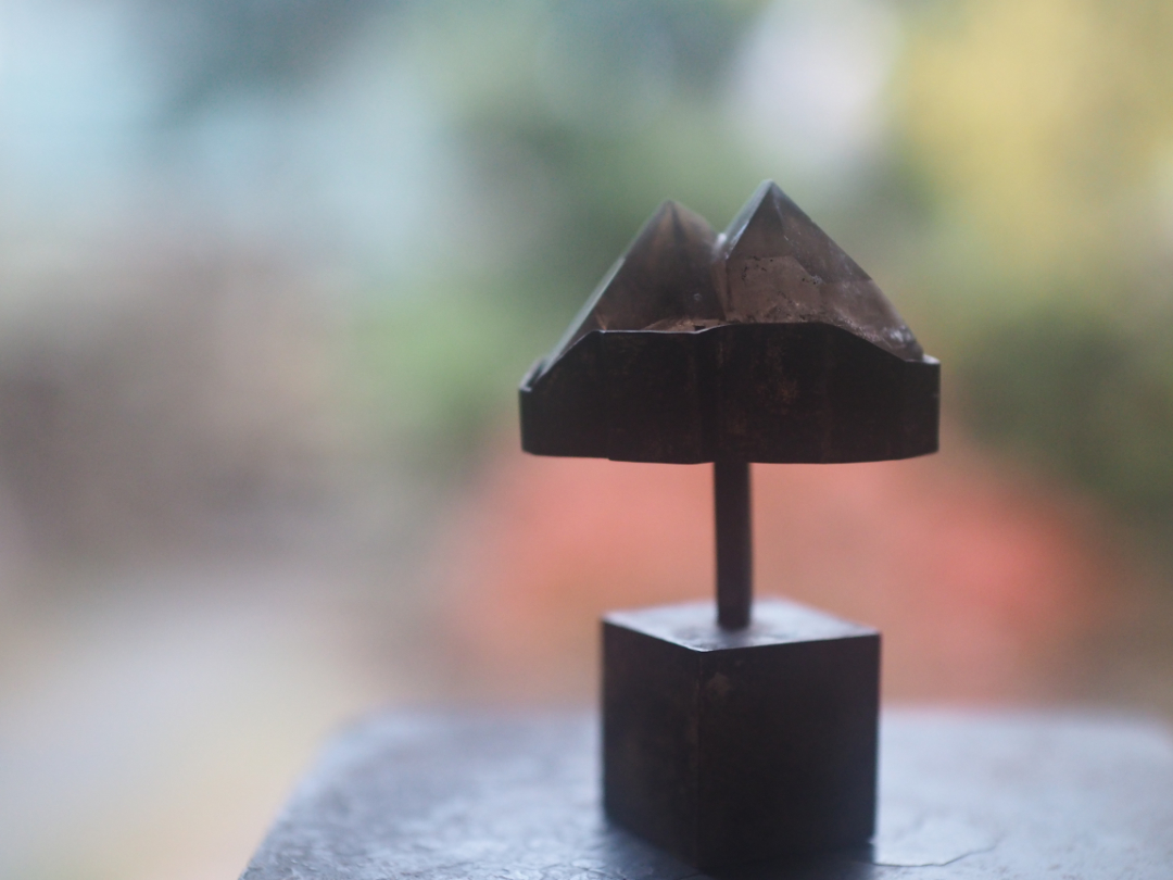 国産のsmoky quartzの原石を、真鍮を用いてobjectに仕立てました。