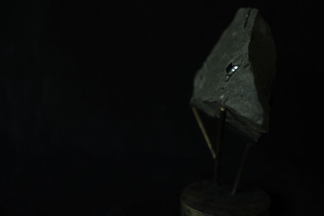 母岩のついたherkimer diamondを、真鍮を用いて、objectに仕立てました。