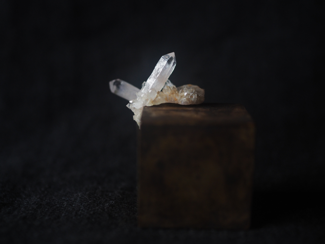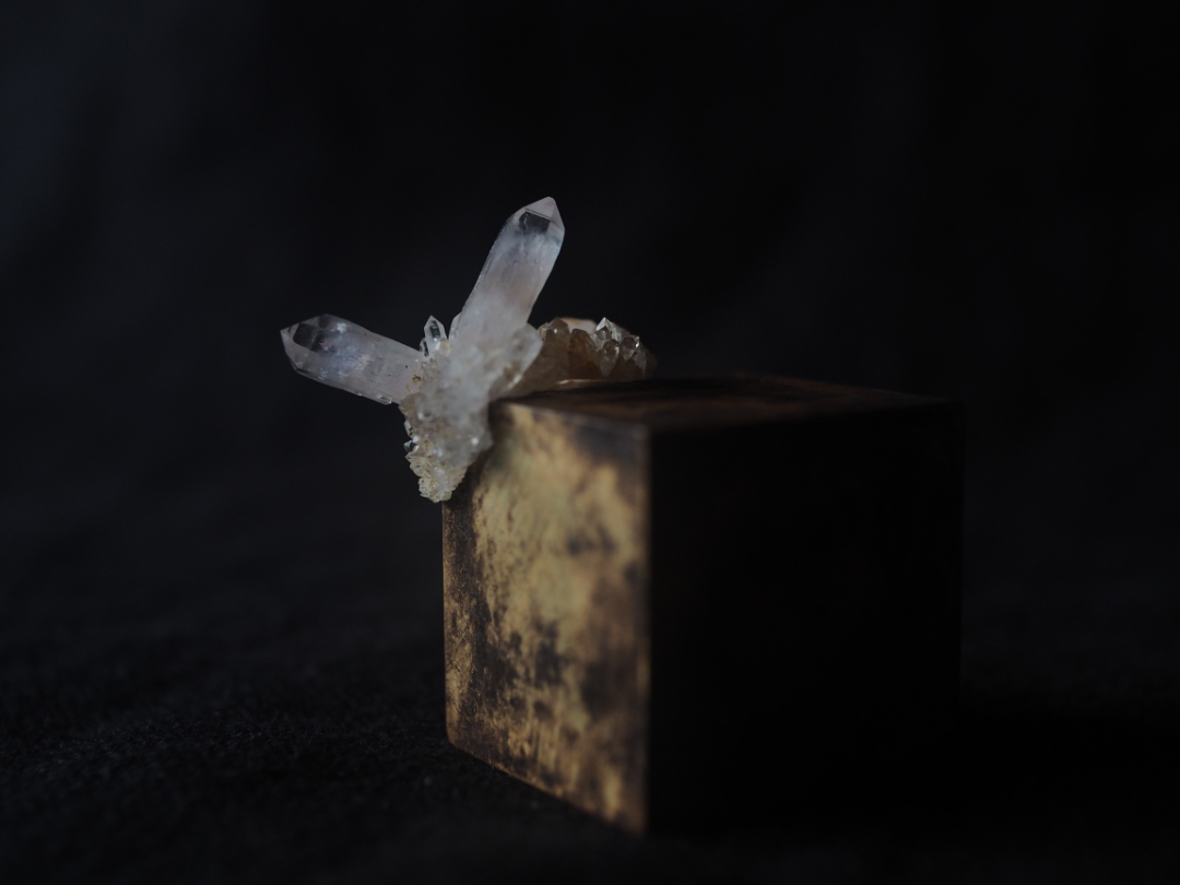 国産のquartzの原石を、真鍮を用いてobjectに仕立てました。