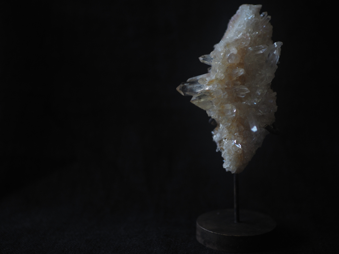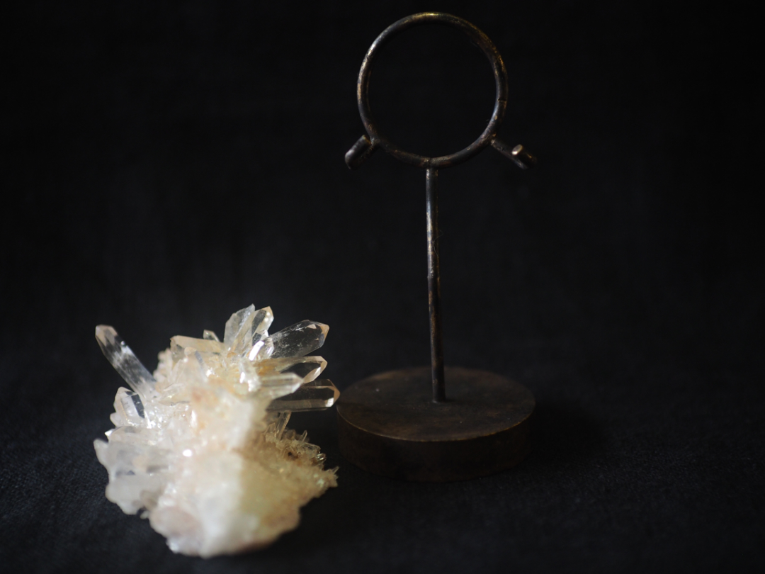 透明度の高いquartzの原石を、真鍮を用いてobjectに仕立てました。