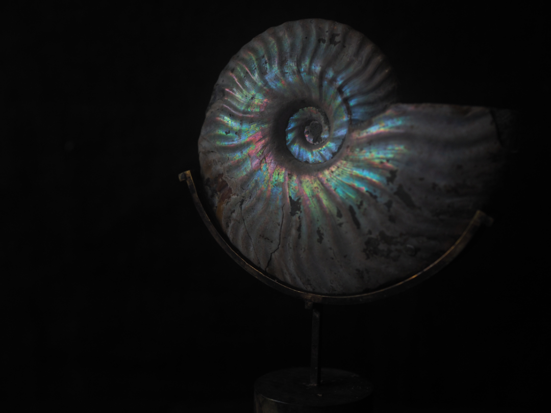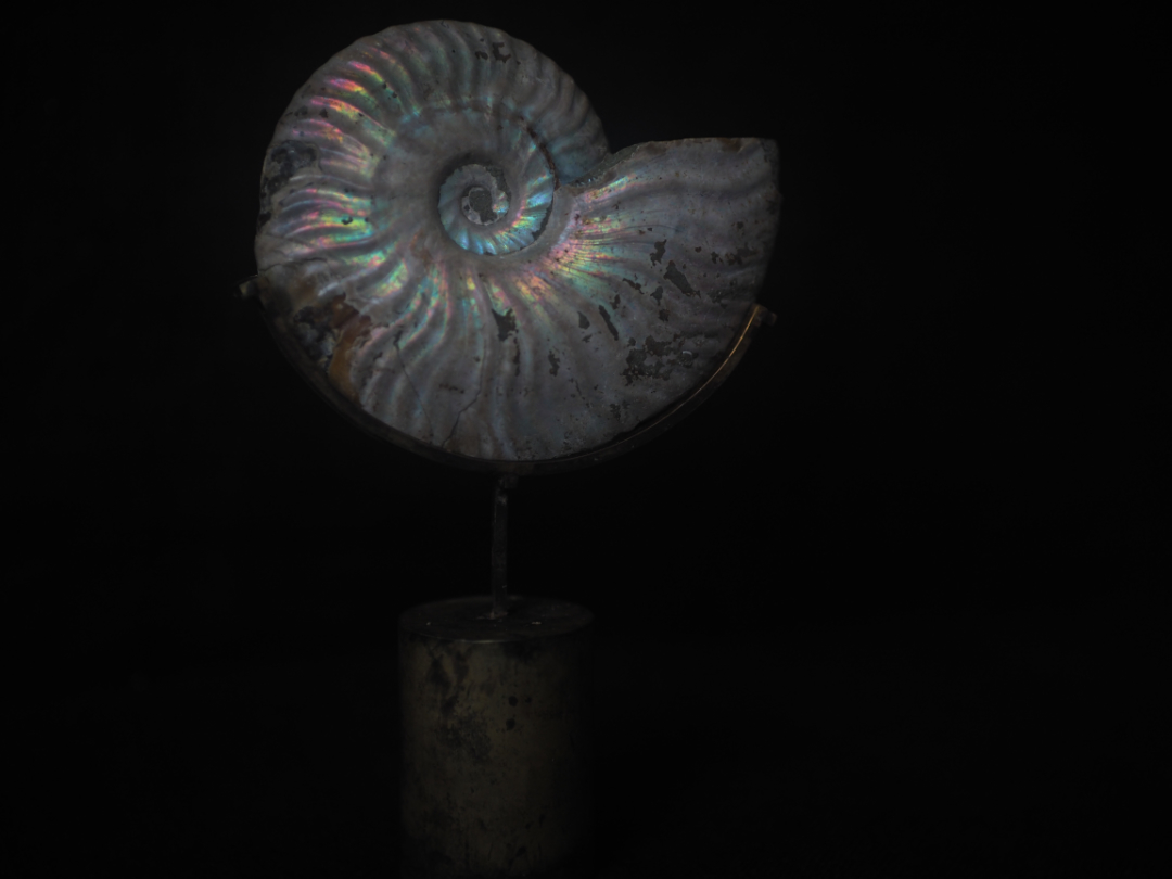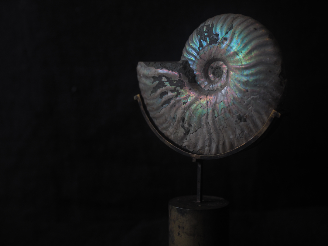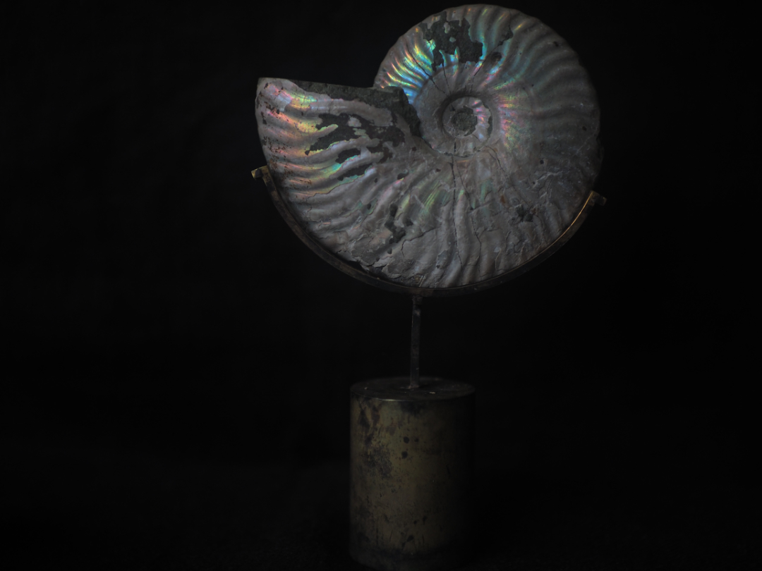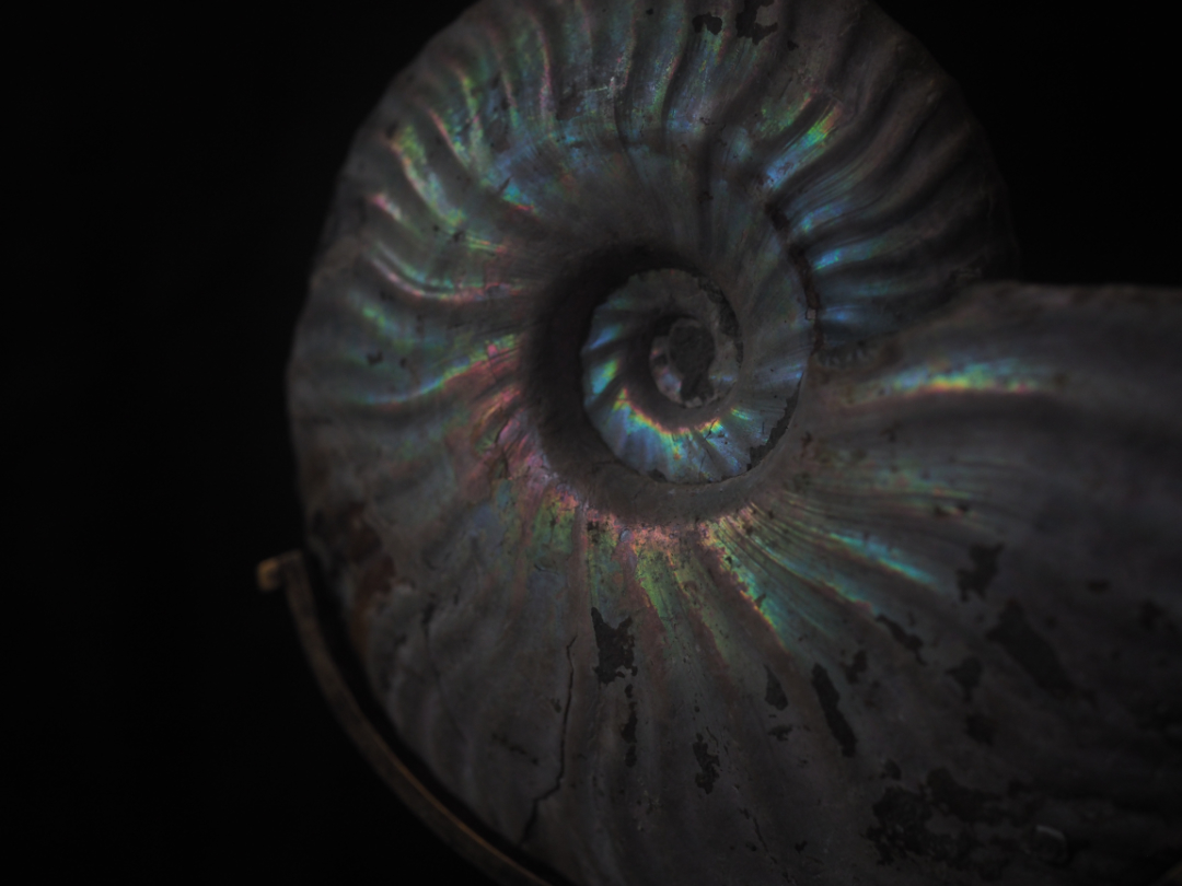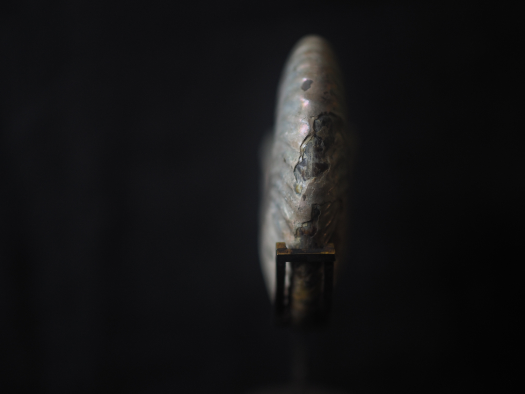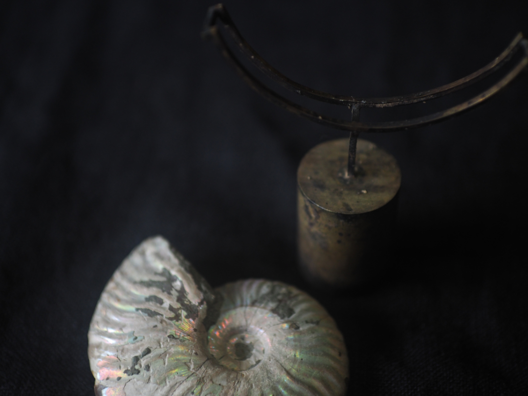 真珠層の表面が美しいammoniteを、真鍮を用いてobjectに仕立てました。