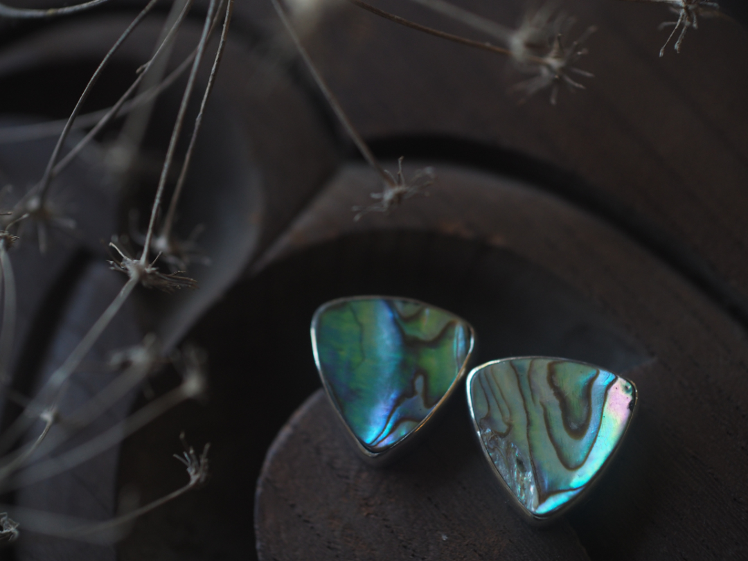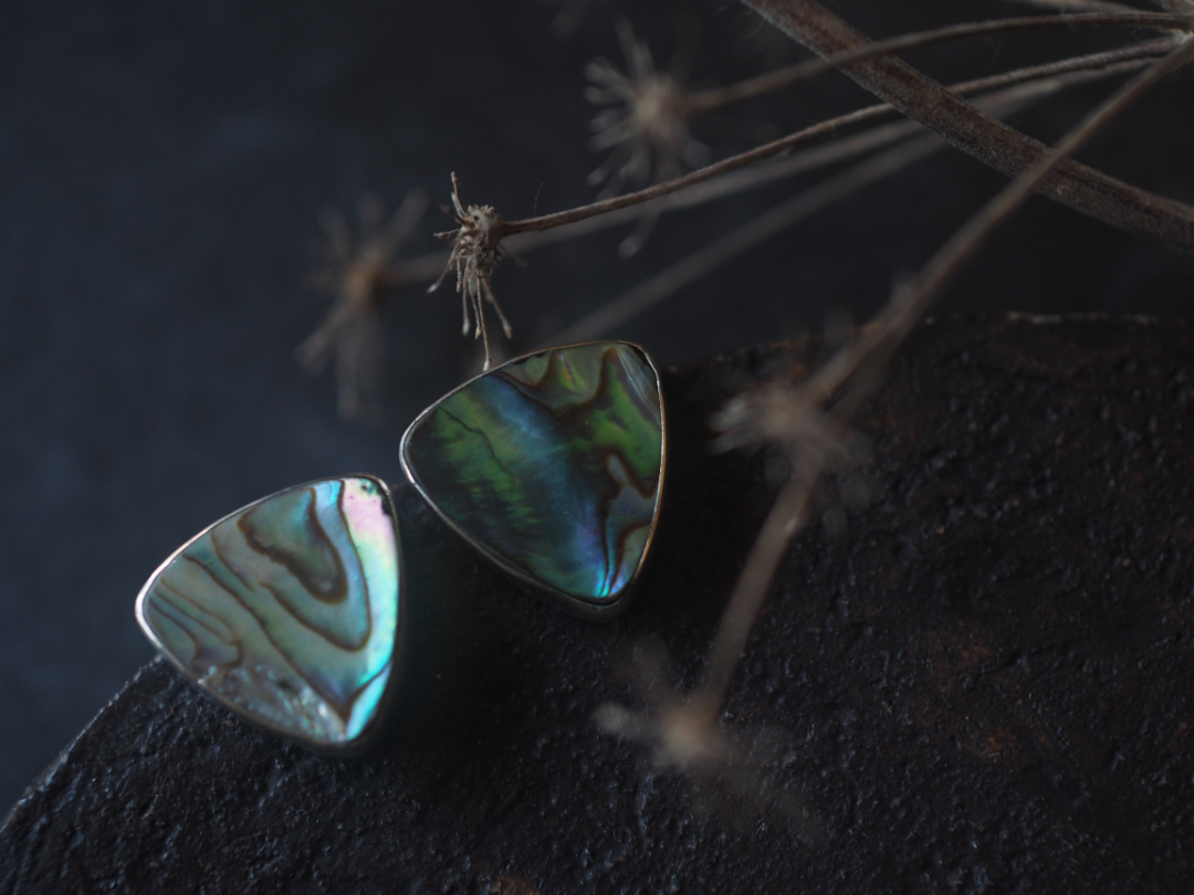 色鮮やかなabalon shellをsilver 950を用いて 、pierceに仕立てました。