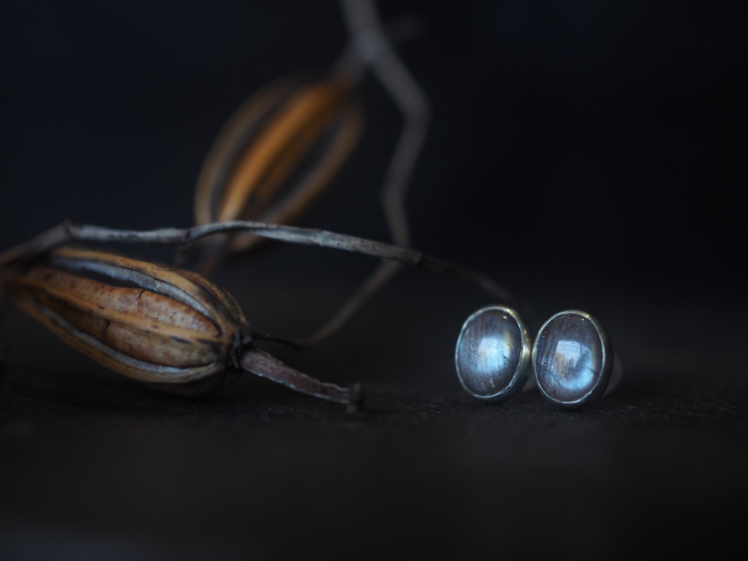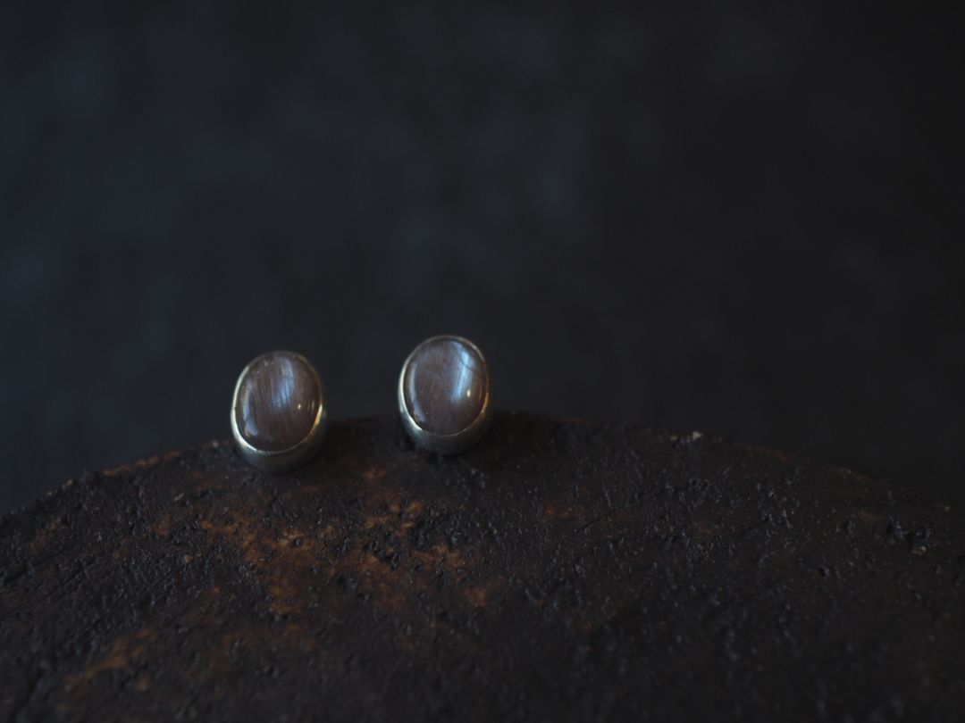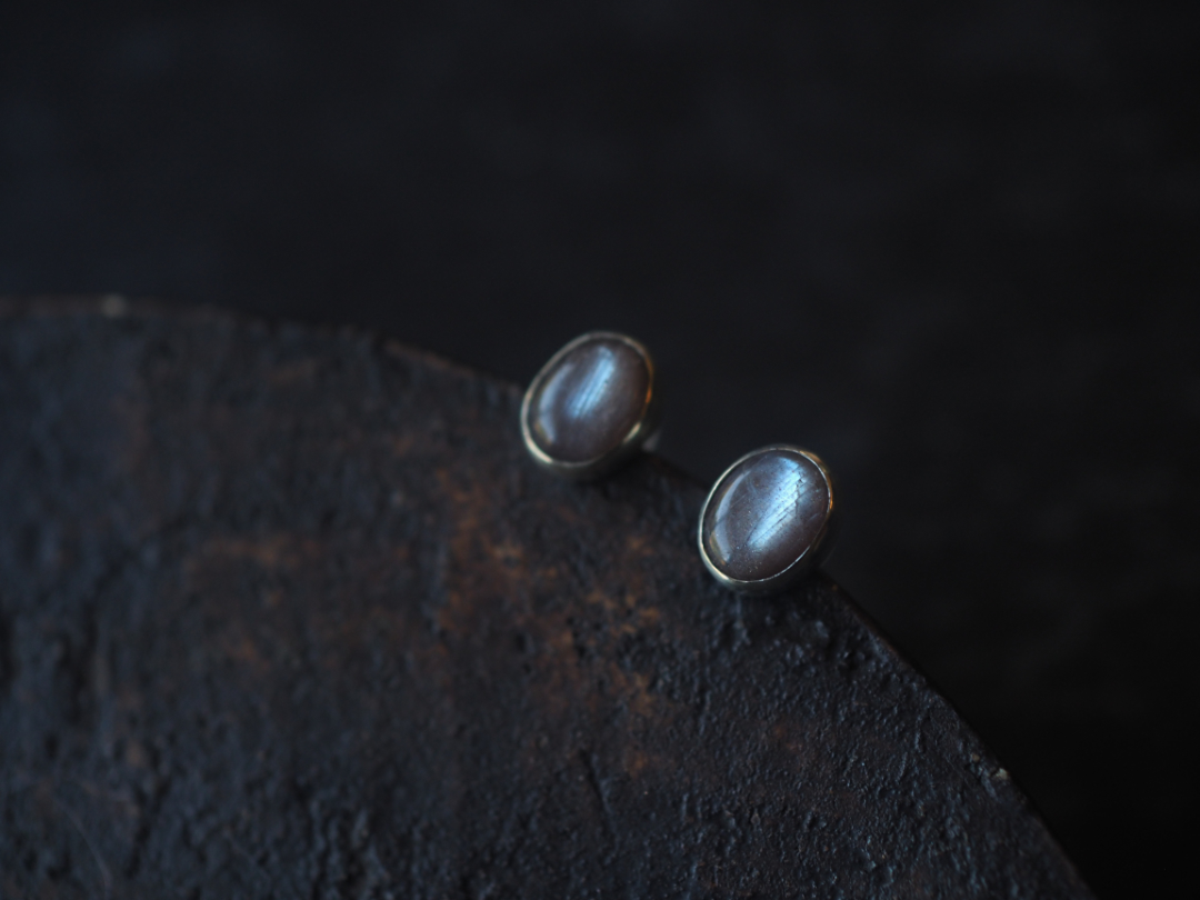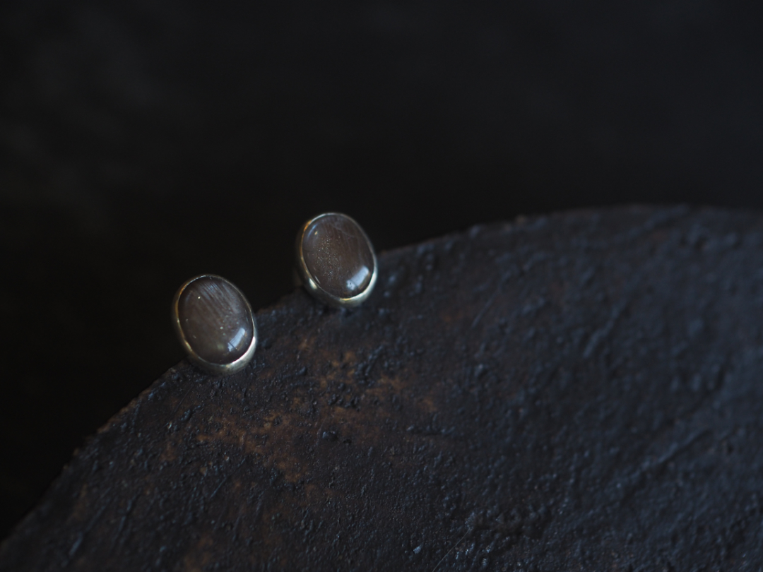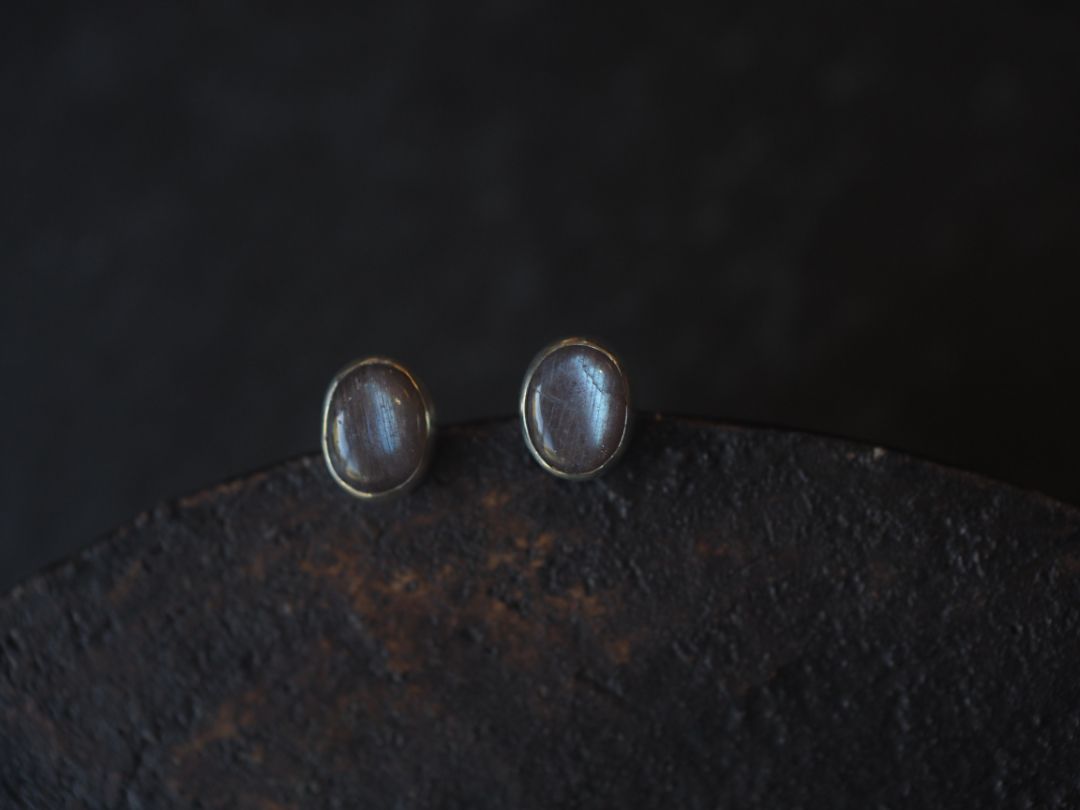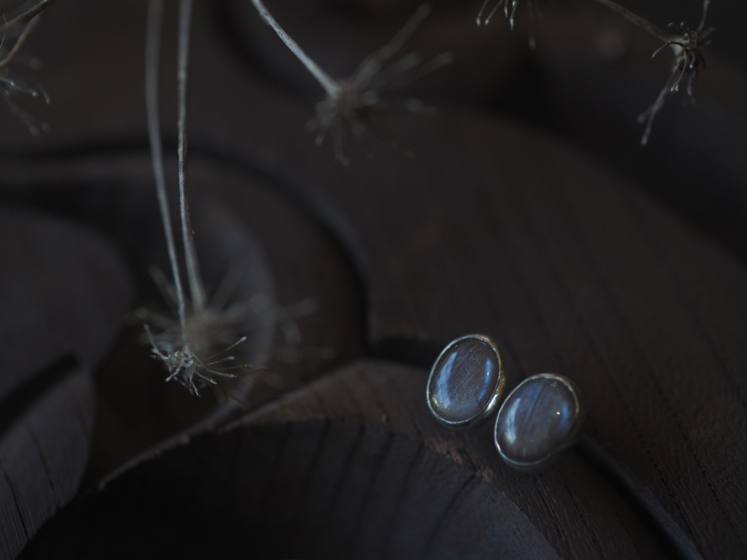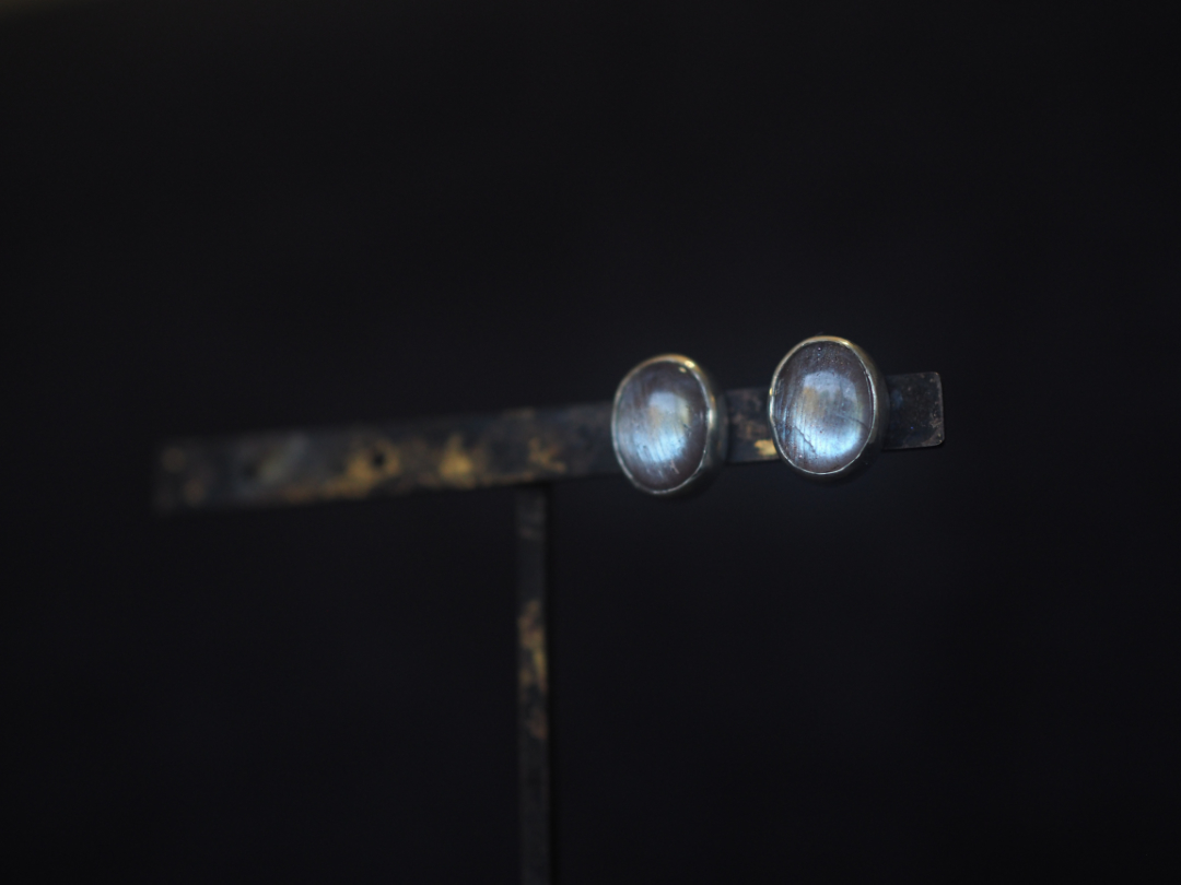 2種類の鉱物の特性を内包したlabradorite sunstoneをsilver 950を用いて 、pierceに仕立てました。