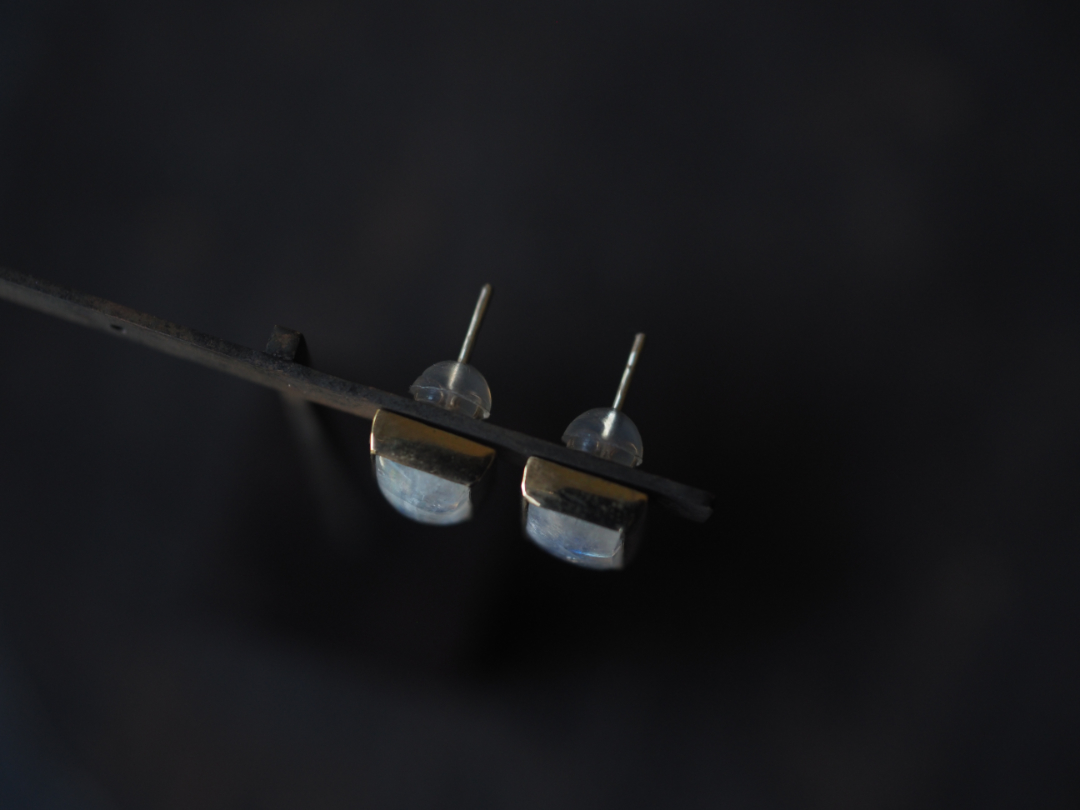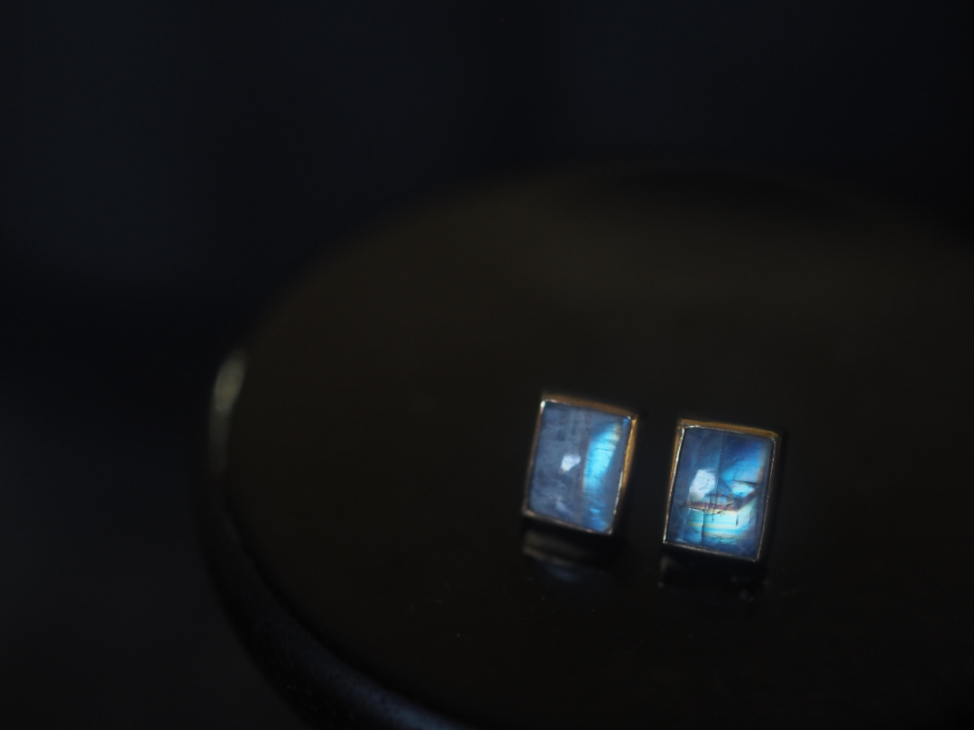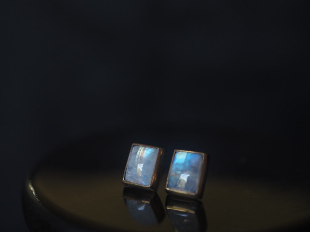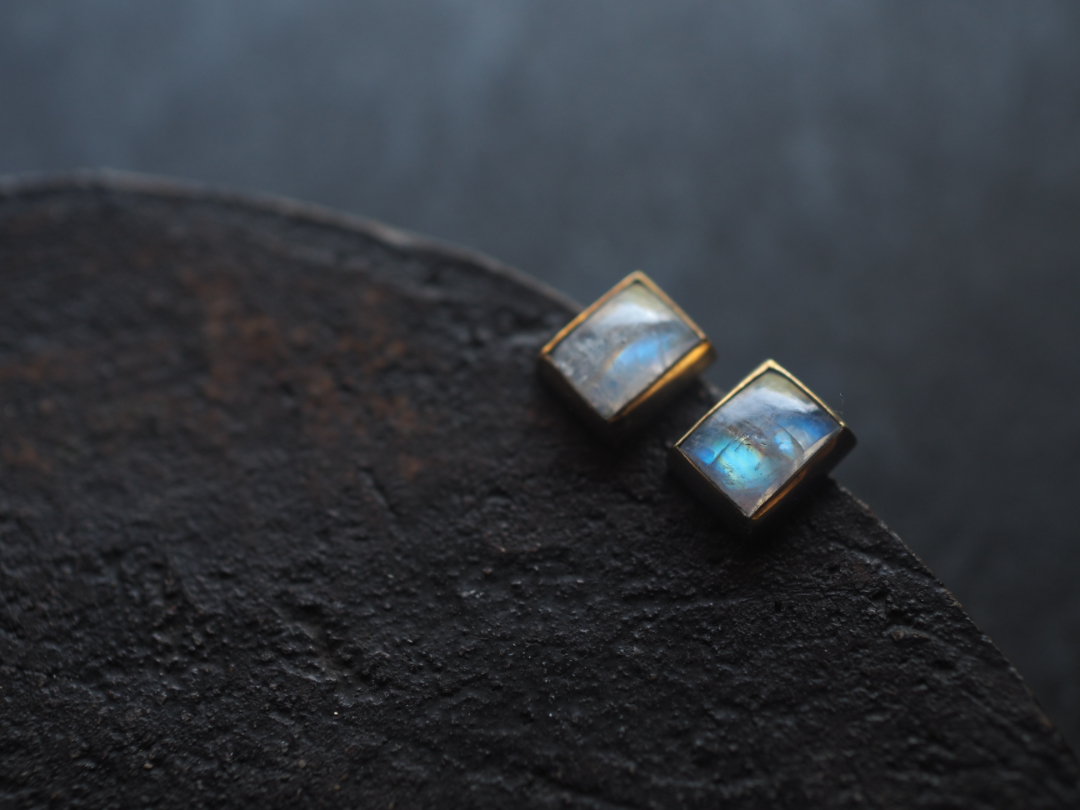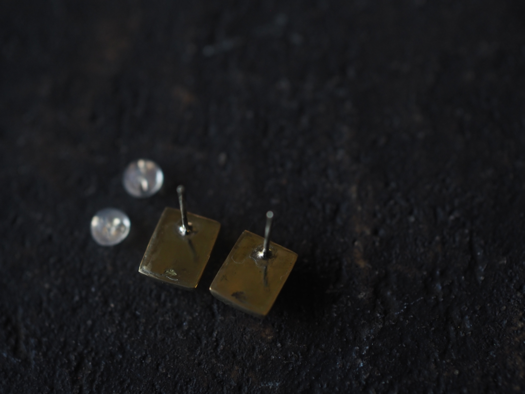 虹色に輝くwhite labradoriteを真鍮を用いて、pierceに仕立てました。