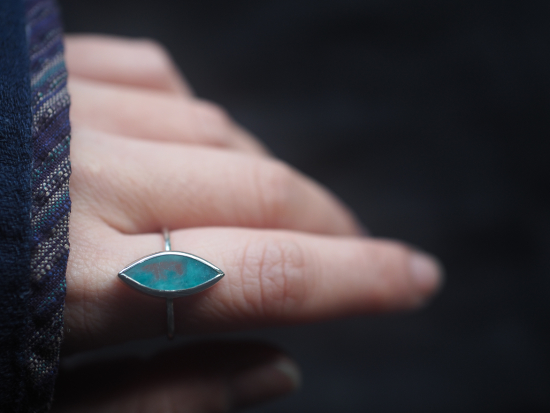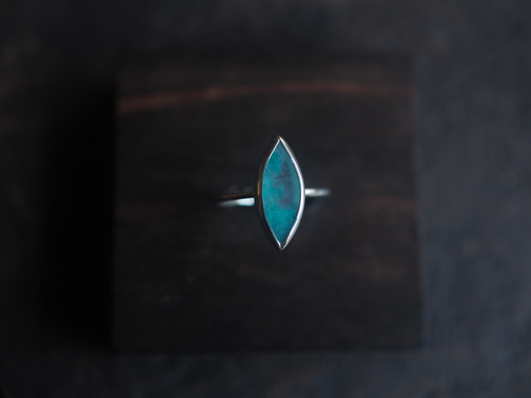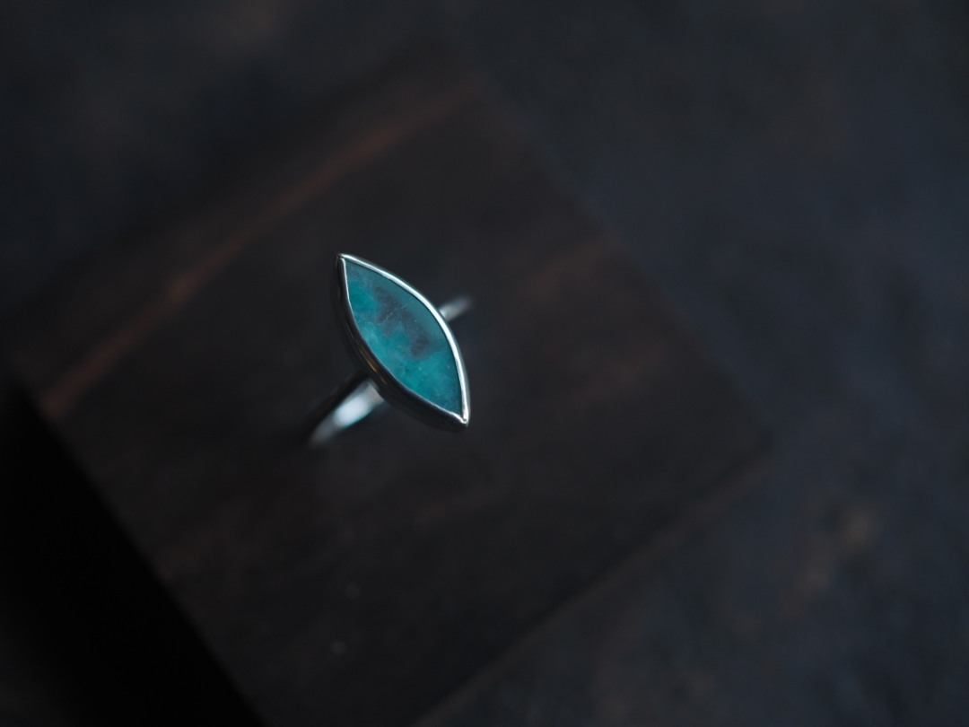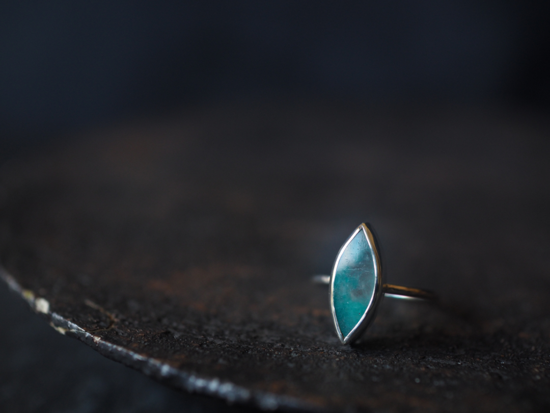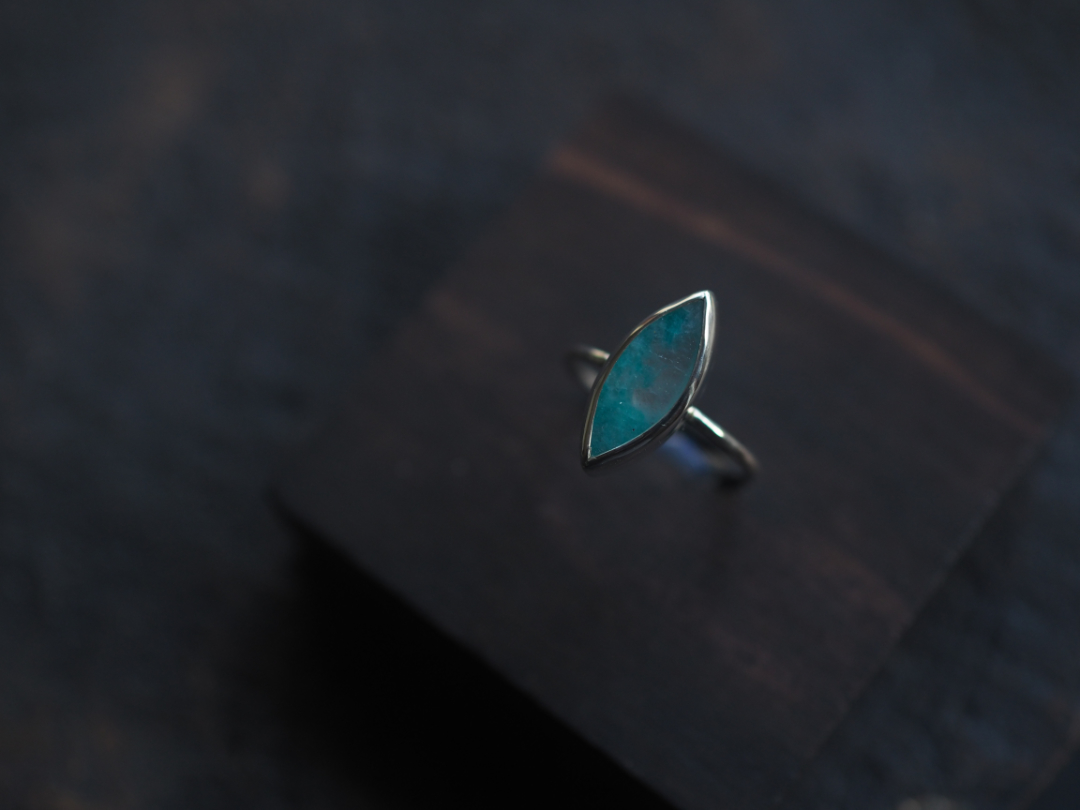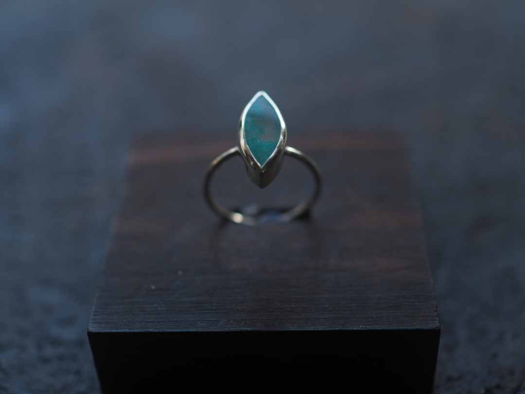 透明感のあるamazonite in quartzをsilver 950を用いて、