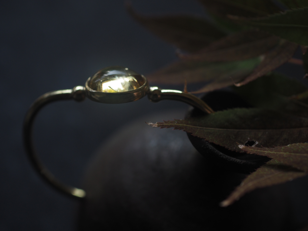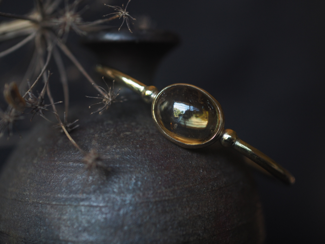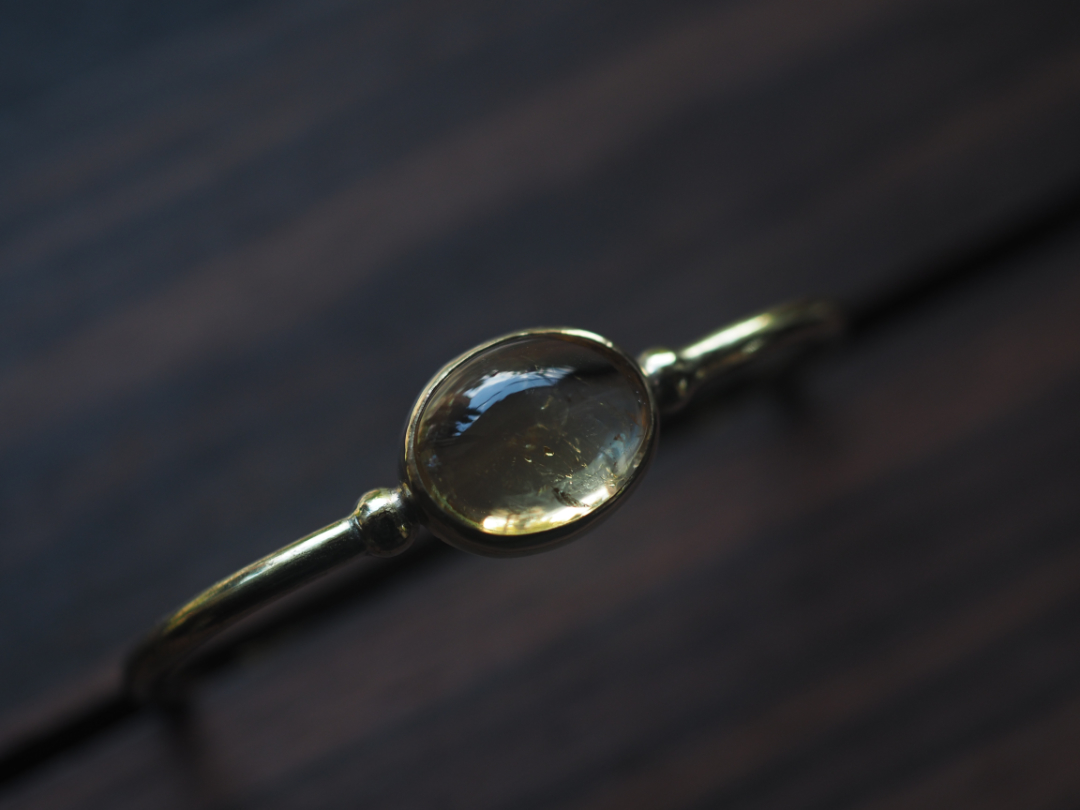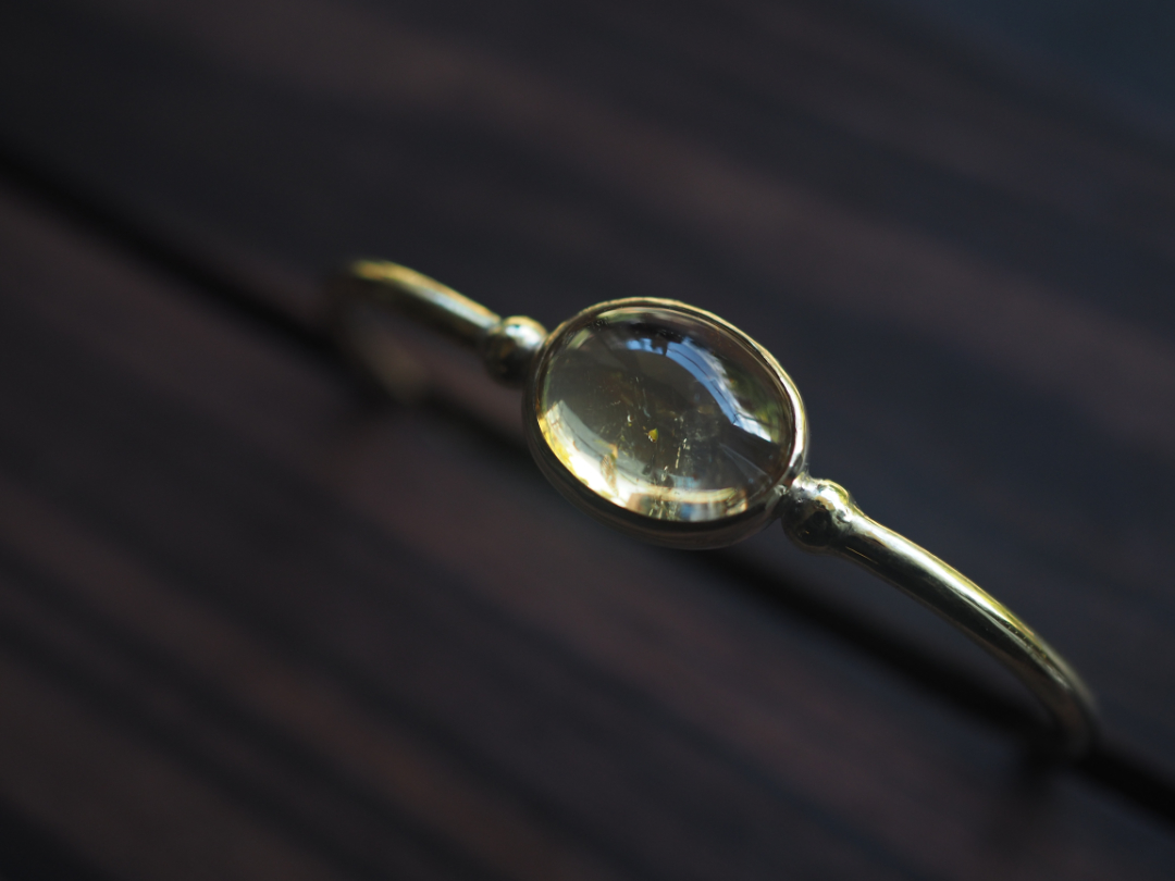 透明度の高いcitrineを真鍮を用いて、bangleに仕立てました。
