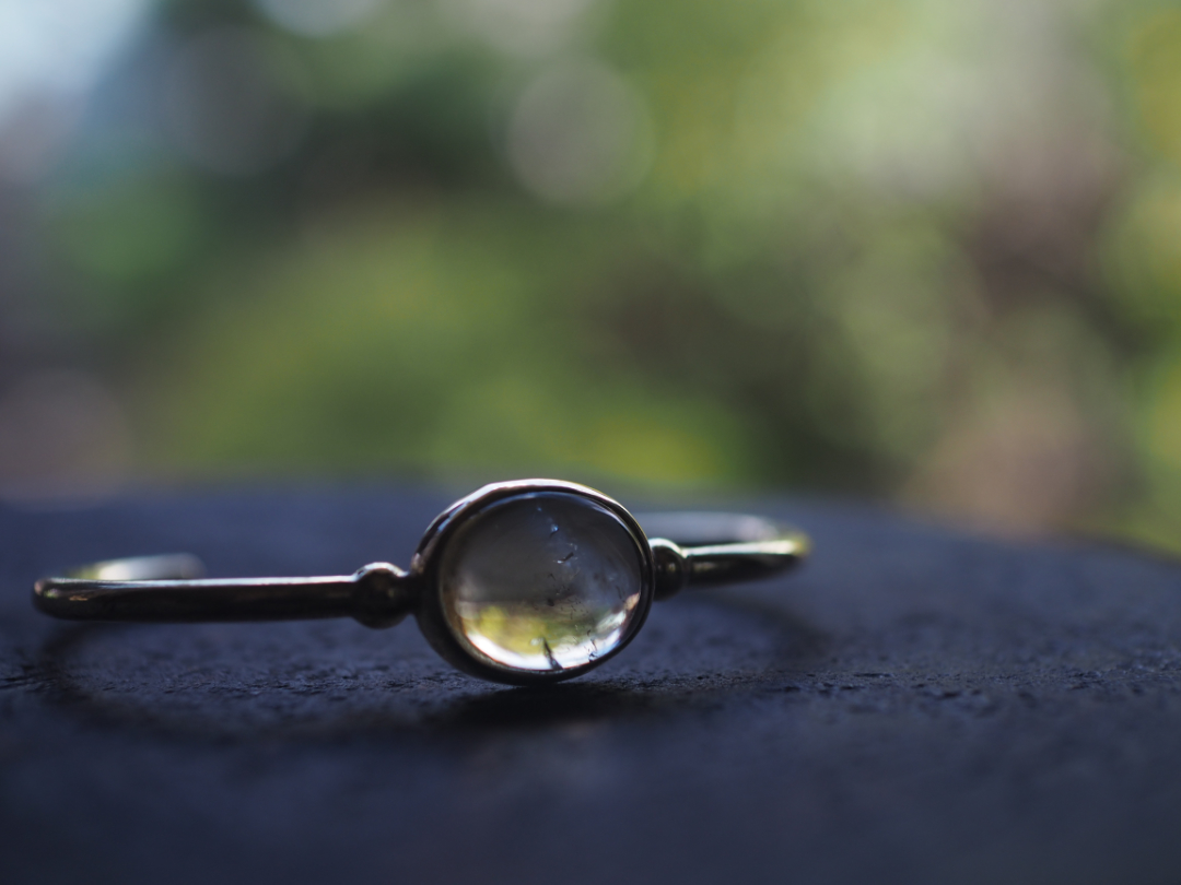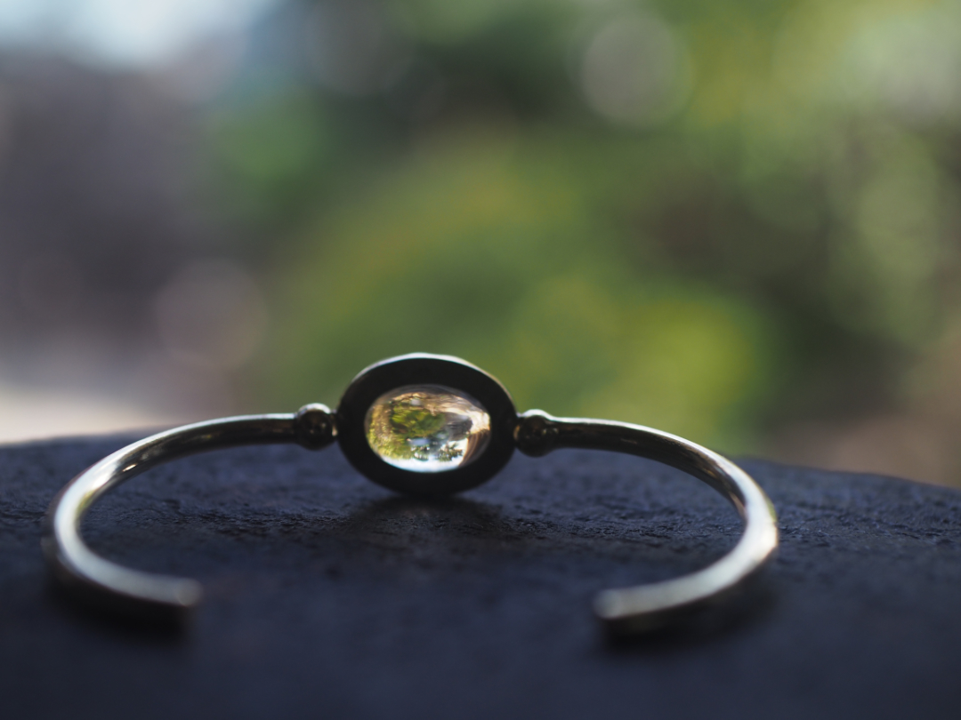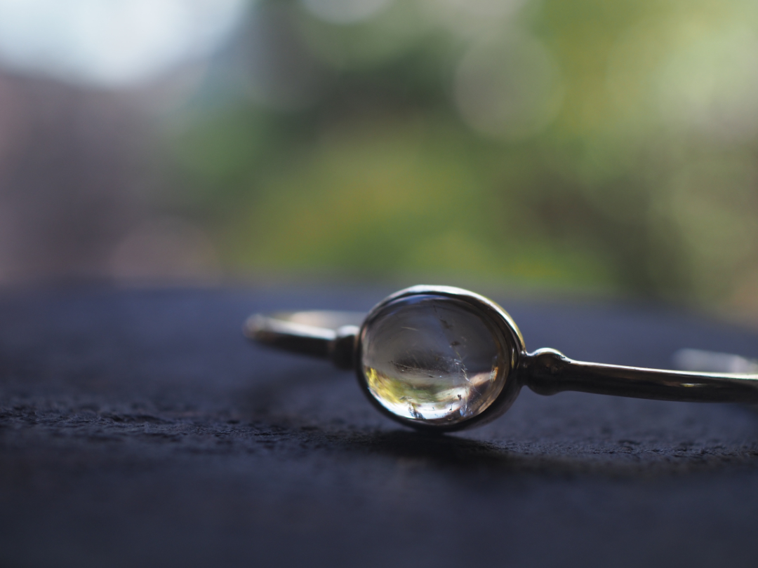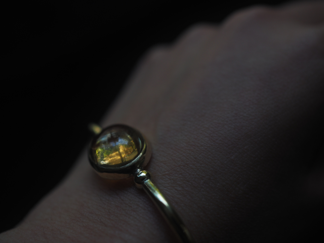 透明度の高いcitrineを真鍮を用いて、bangleに仕立てました。