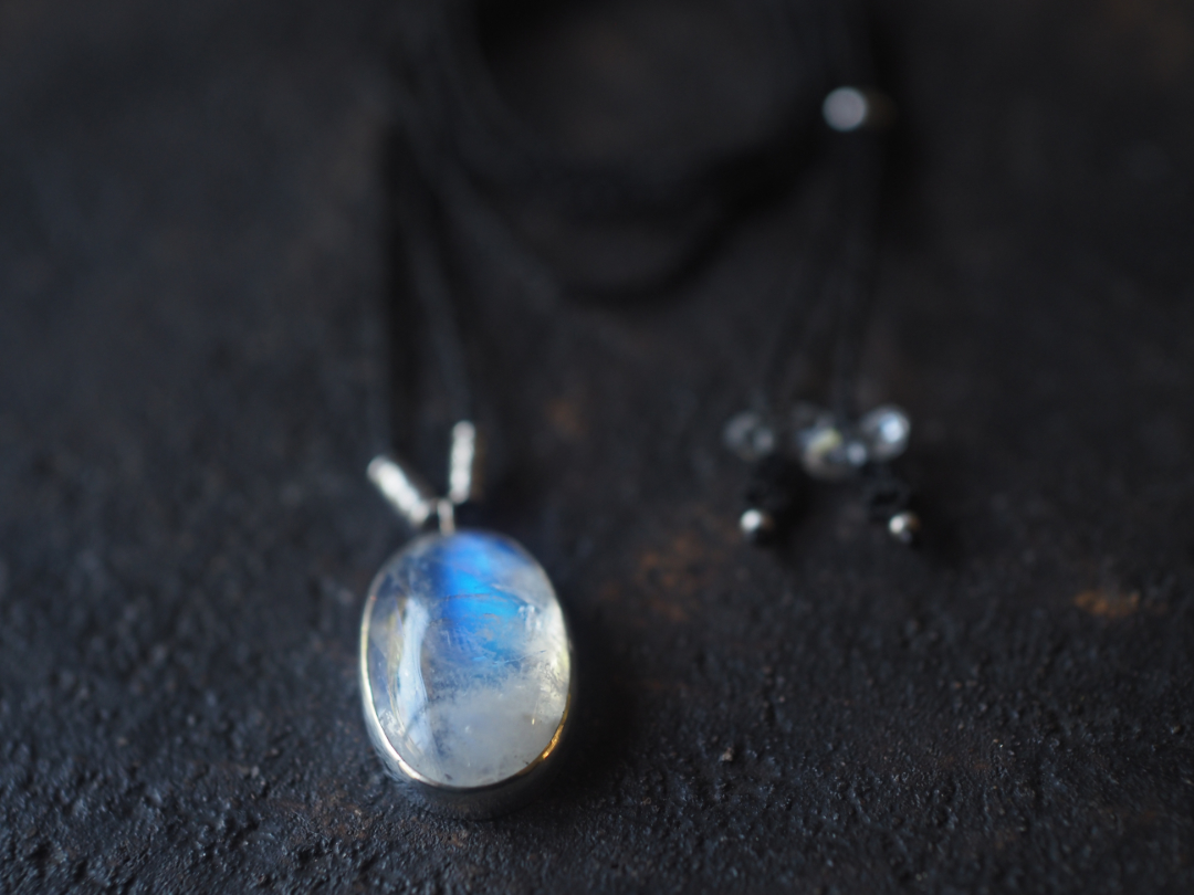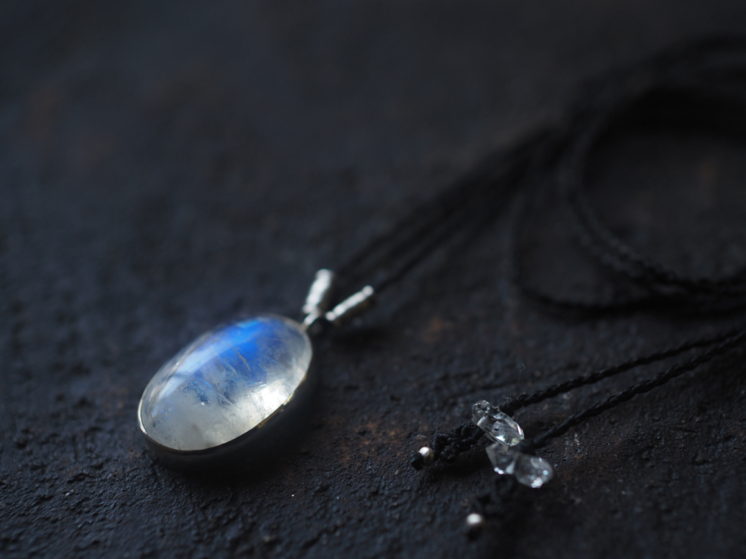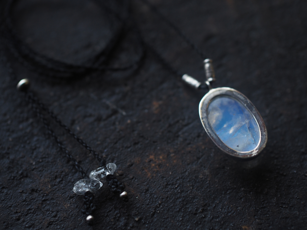 石 : white labradorite・rainbow moonstone / herkimer diamond