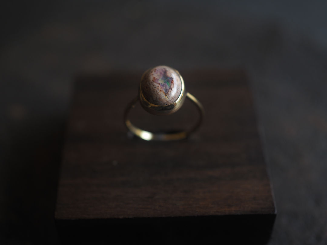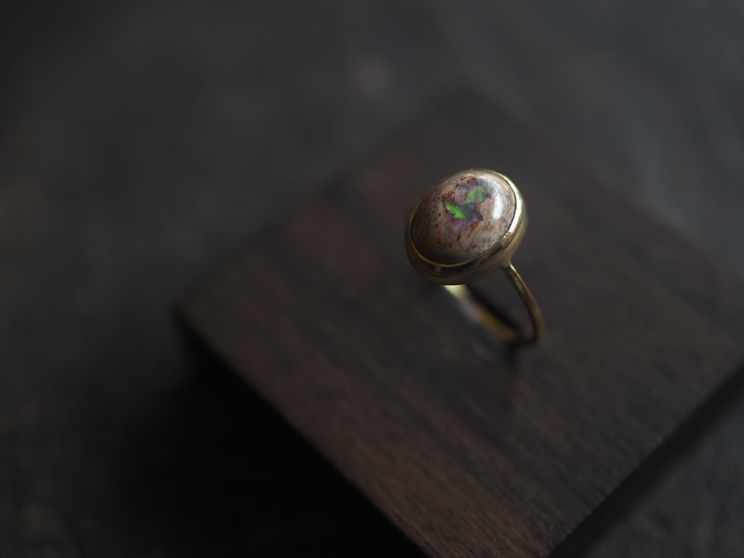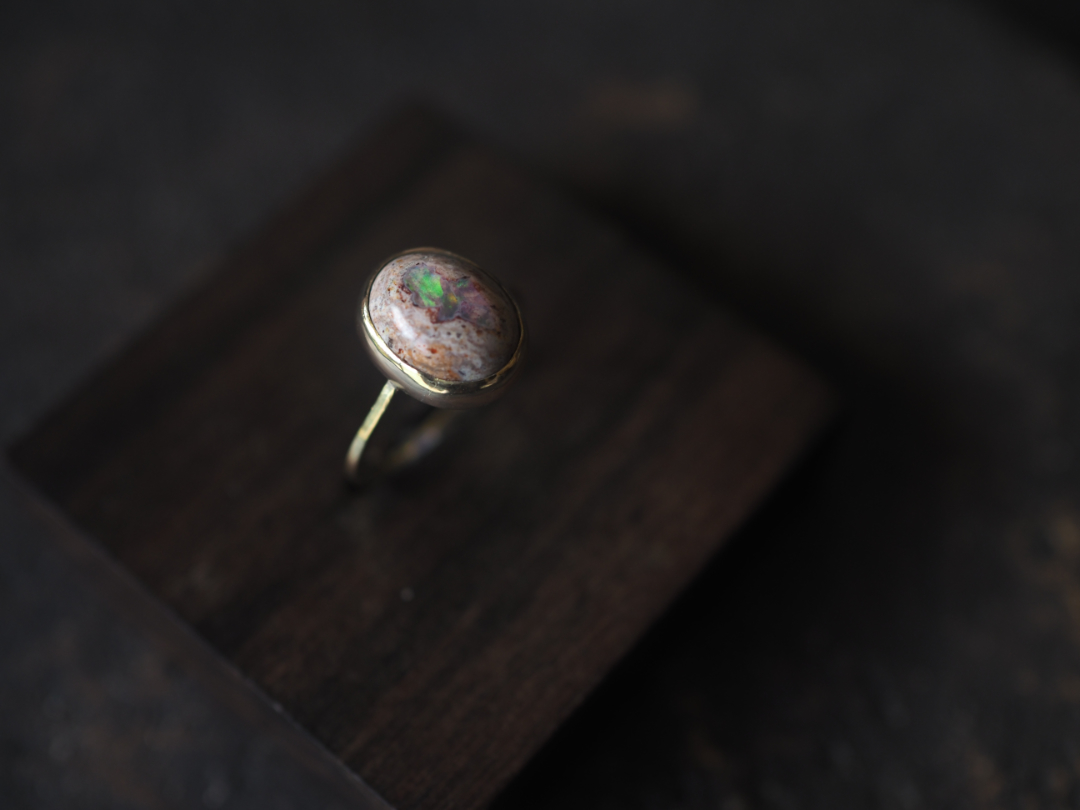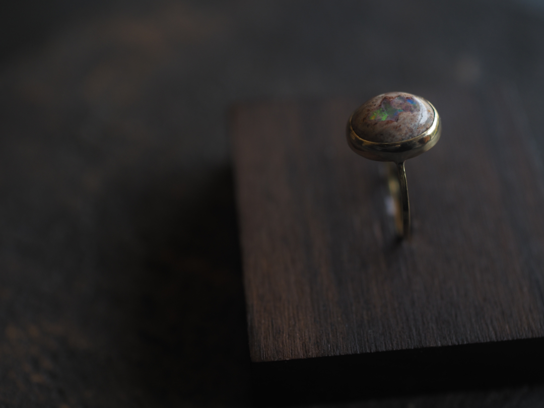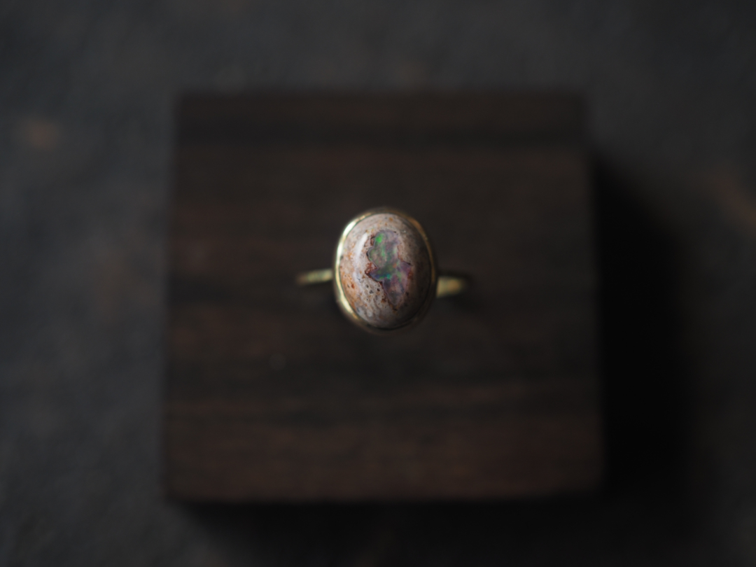 遊色の色合いが美しいcantera opalを真鍮を用いて、ringに仕立てました。