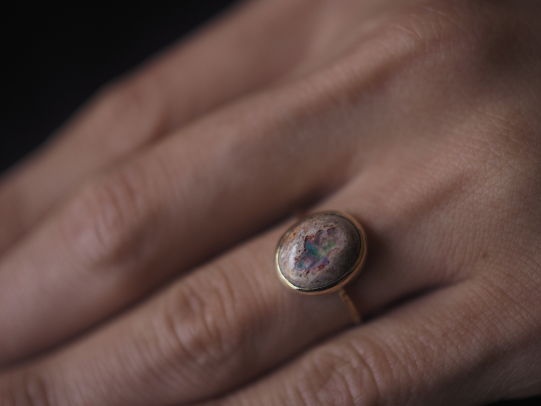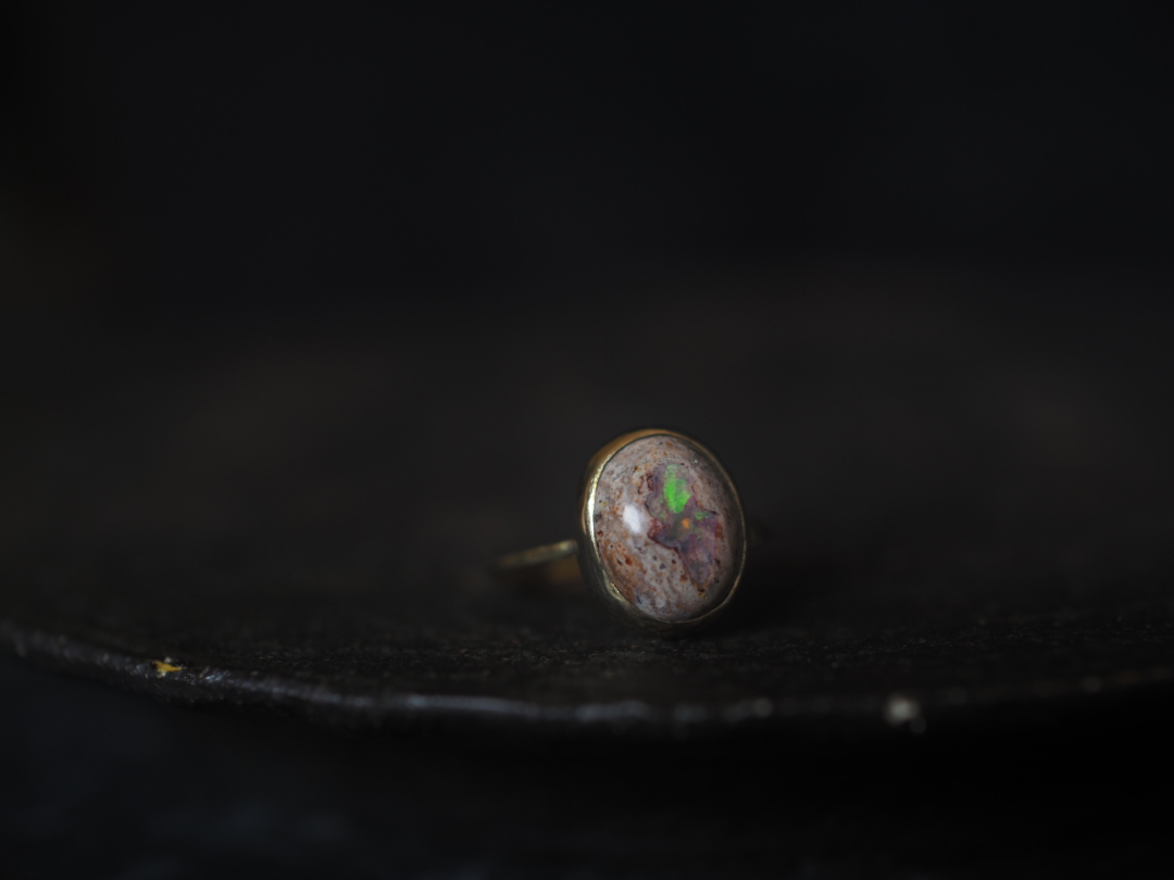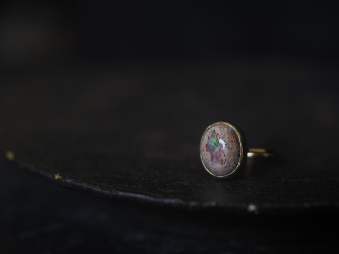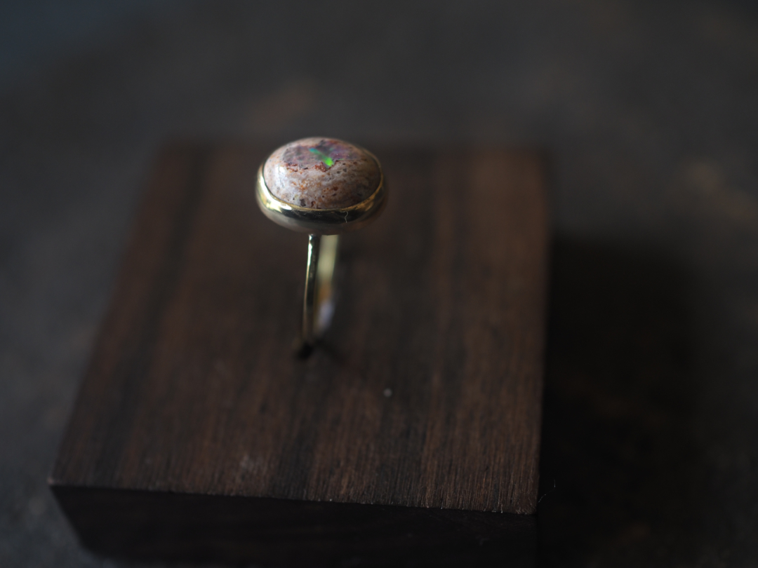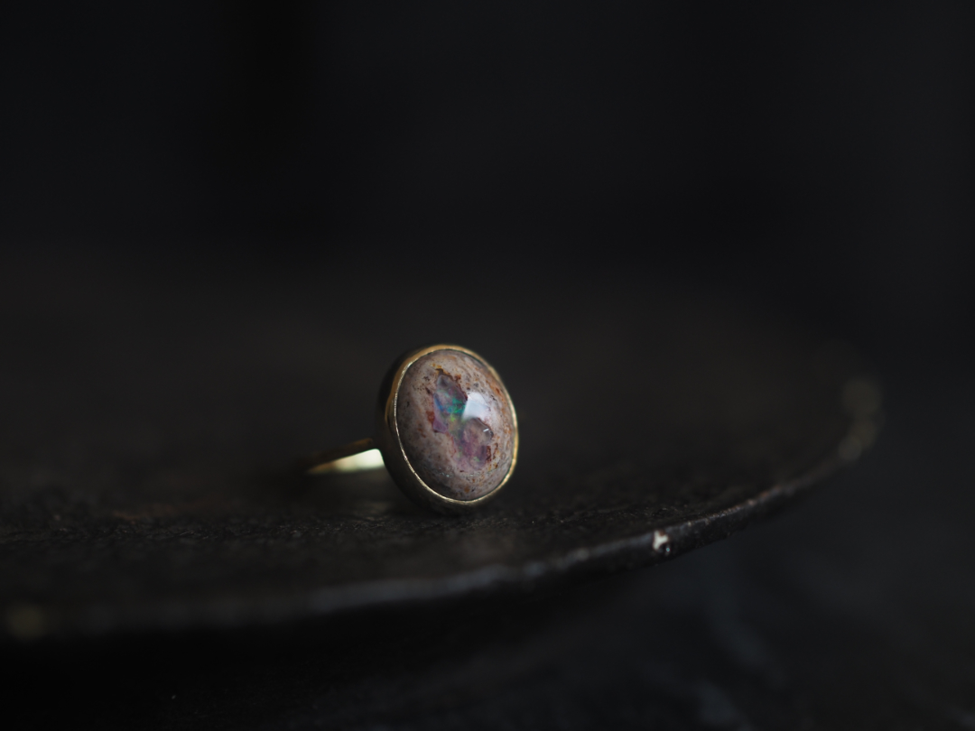 遊色の色合いが美しいcantera opalを真鍮を用いて、ringに仕立てました。