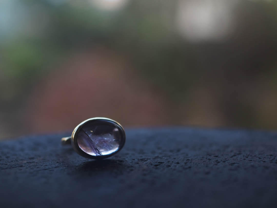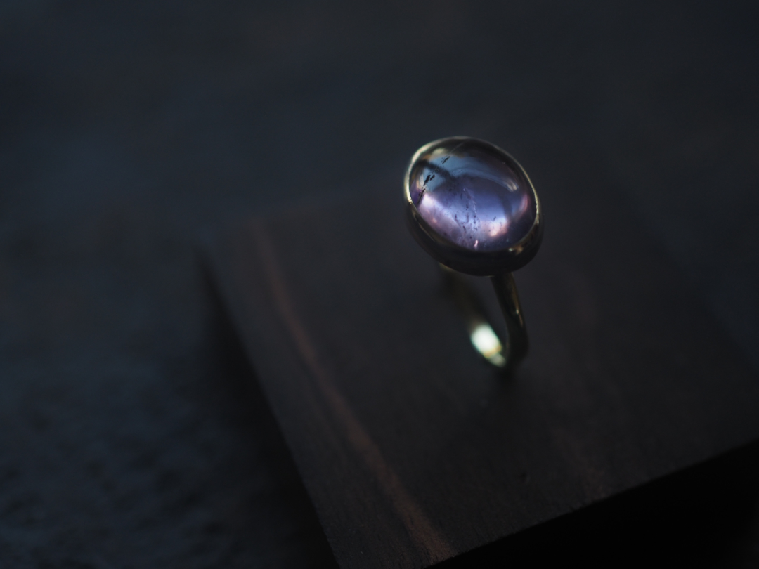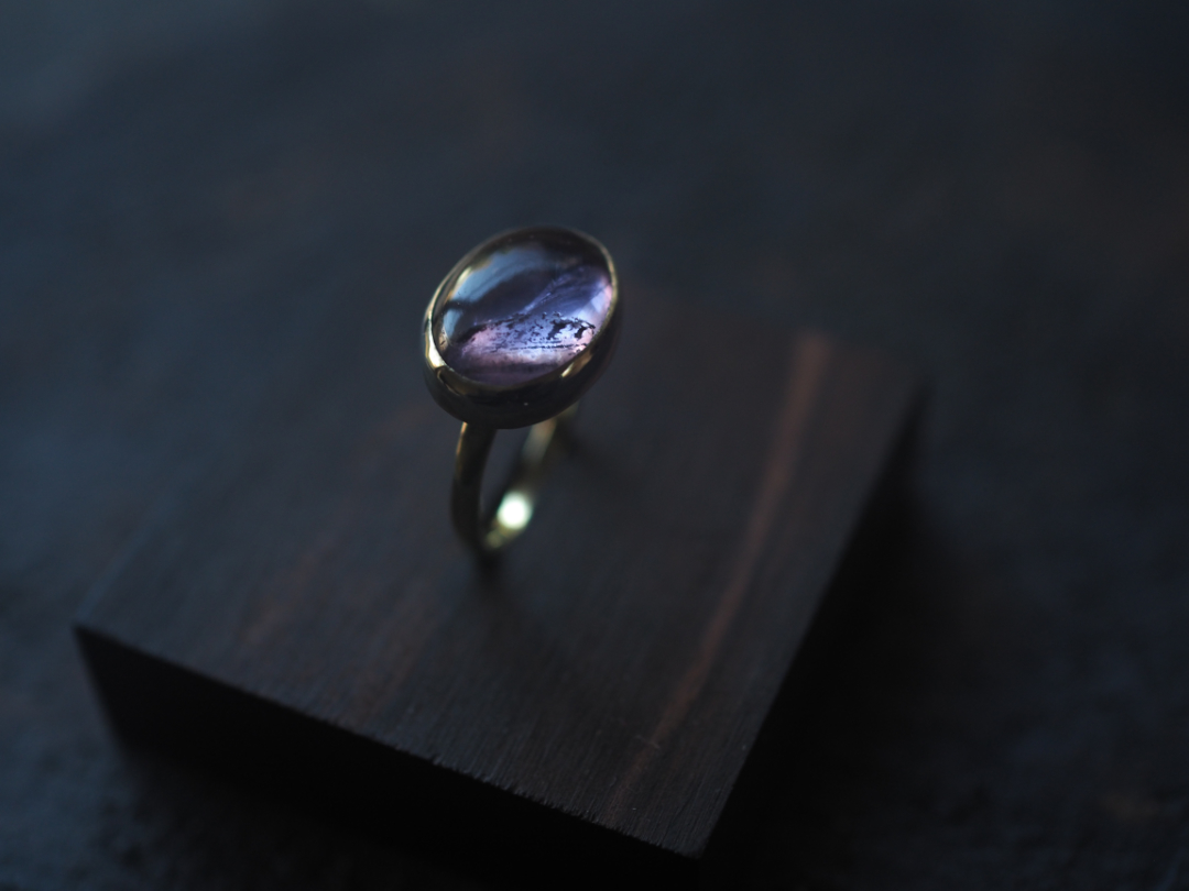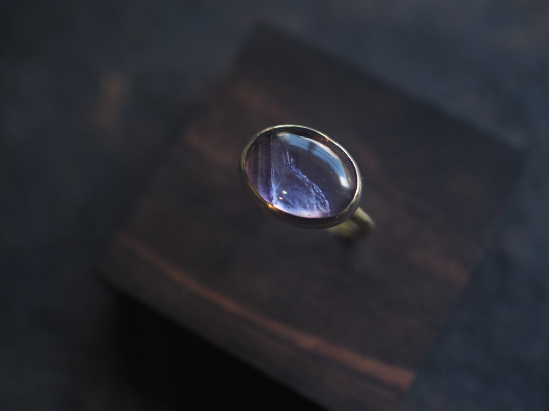 色の移ろいが美しい amethystを真鍮を用いて、ringに仕立てました。