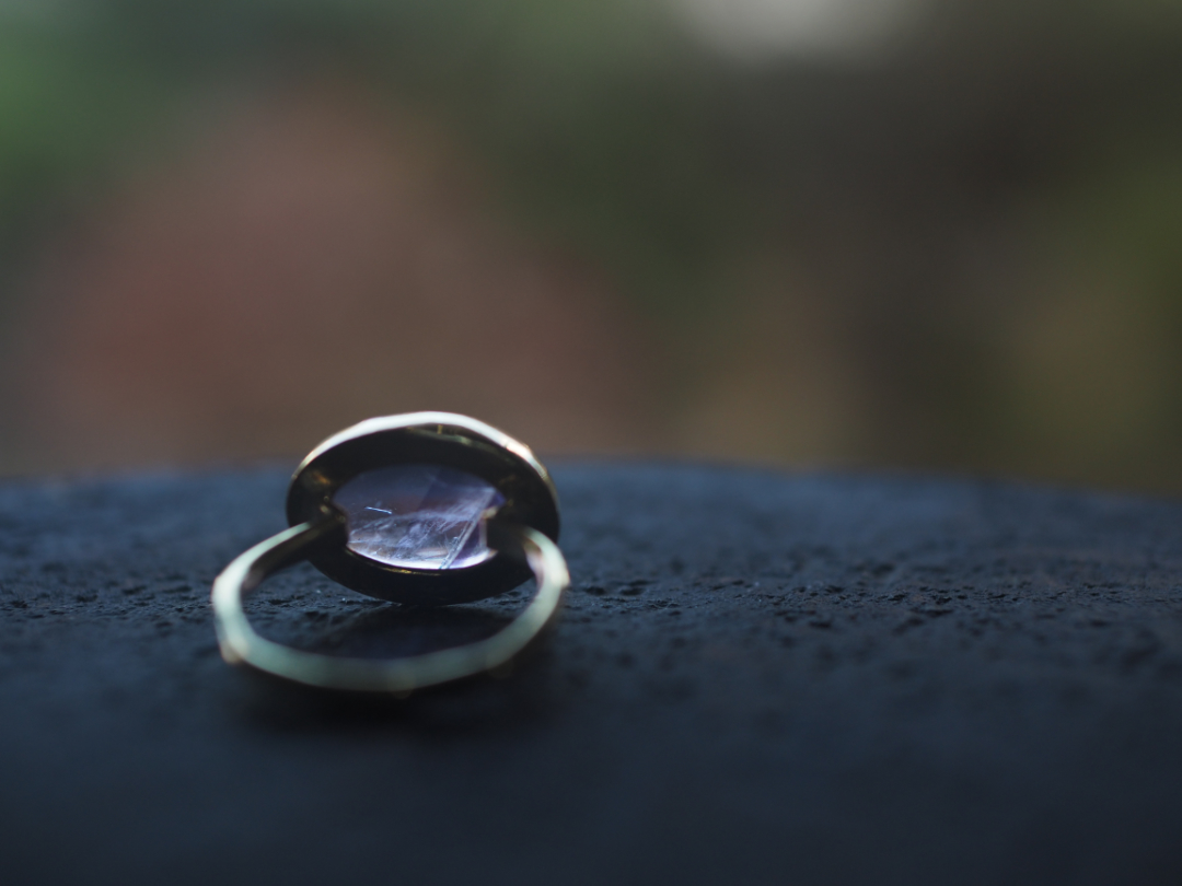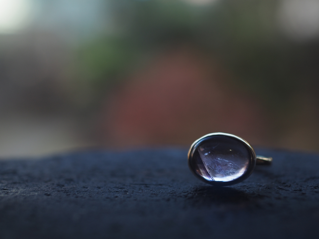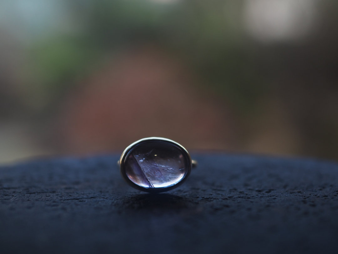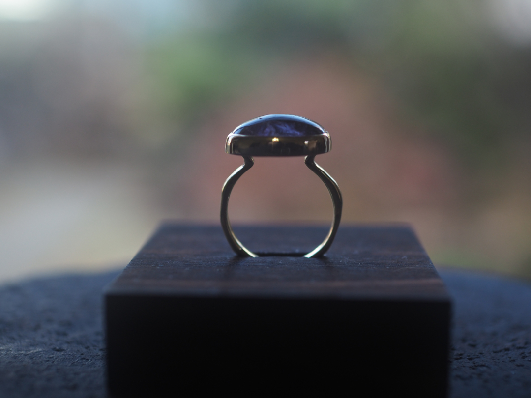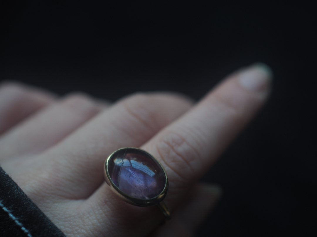 色の移ろいが美しい amethystを真鍮を用いて、ringに仕立てました。