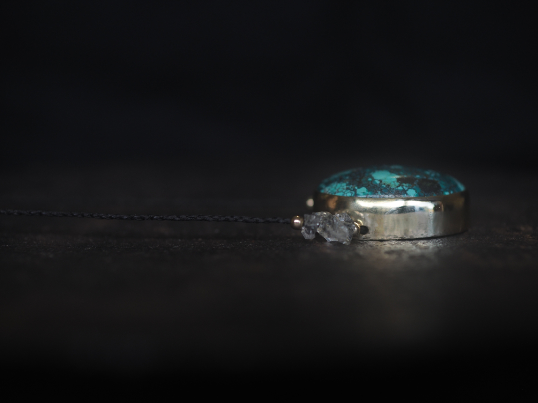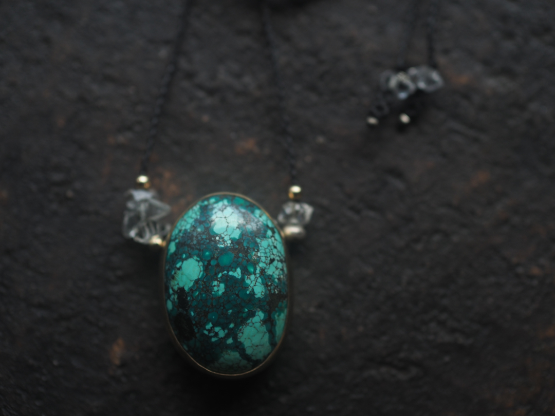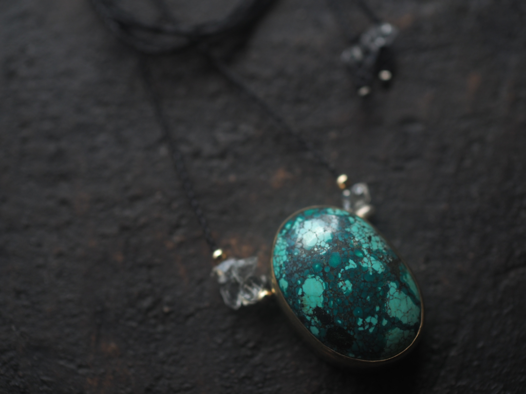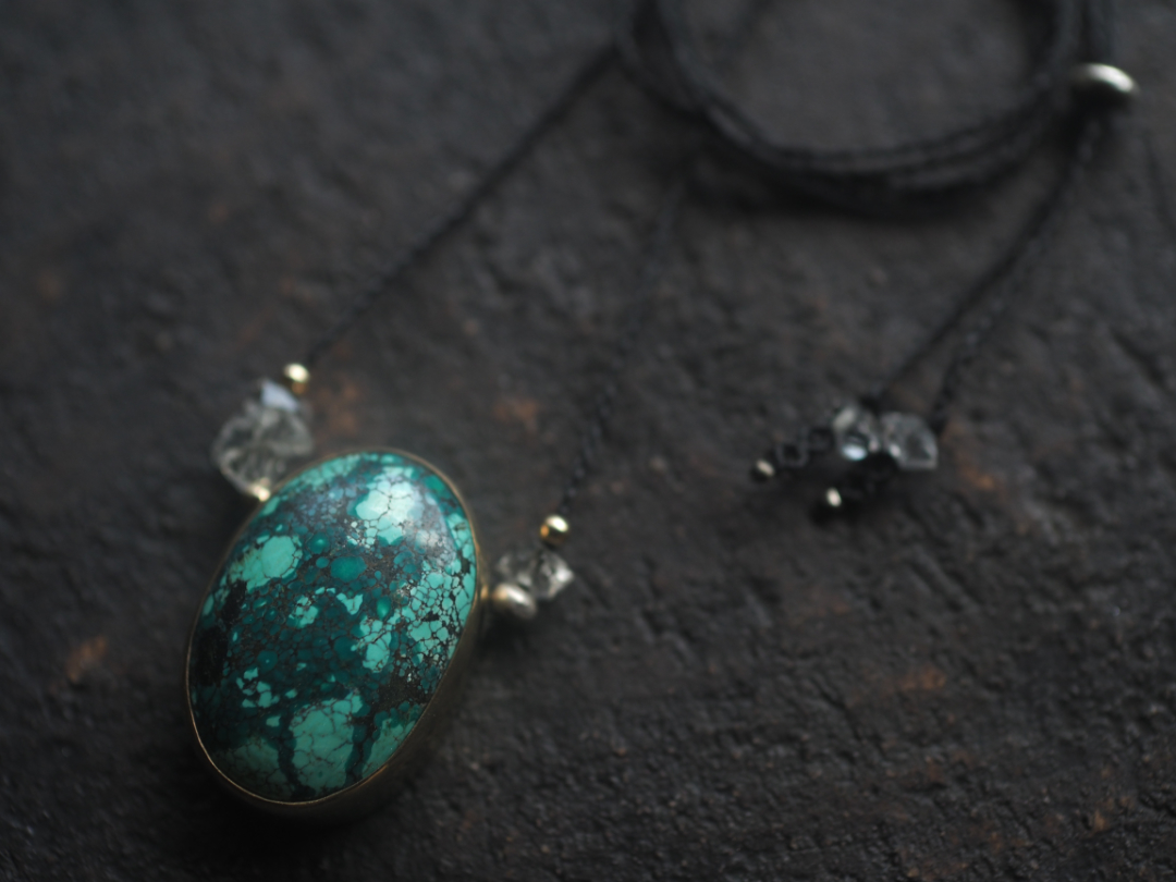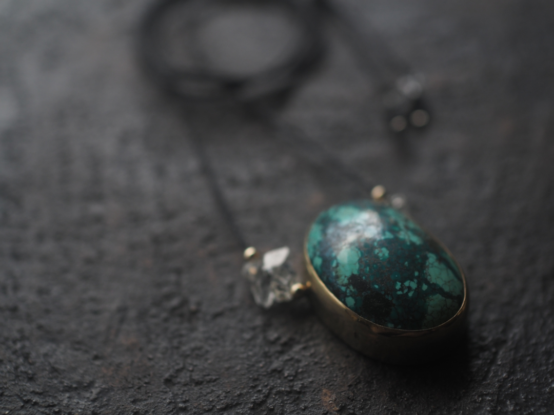 独特な模様のturquoiseを真鍮を用いて、necklaceに仕立てました。