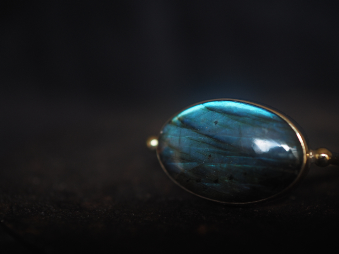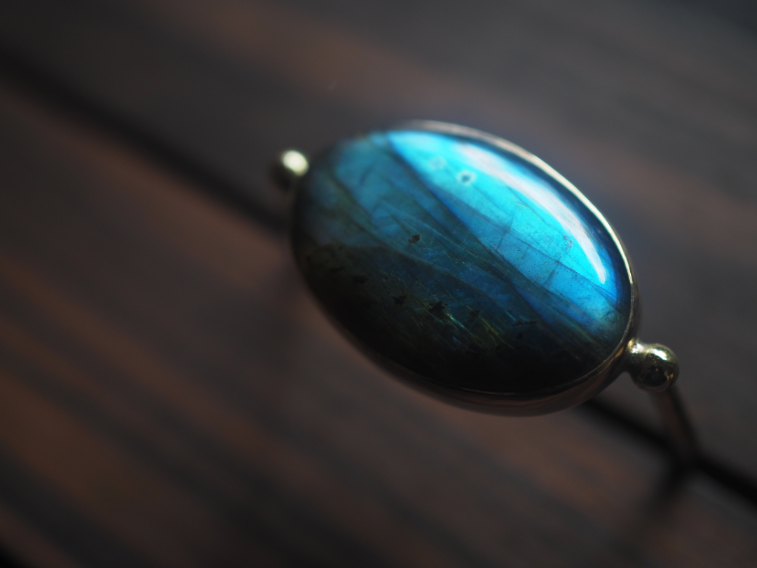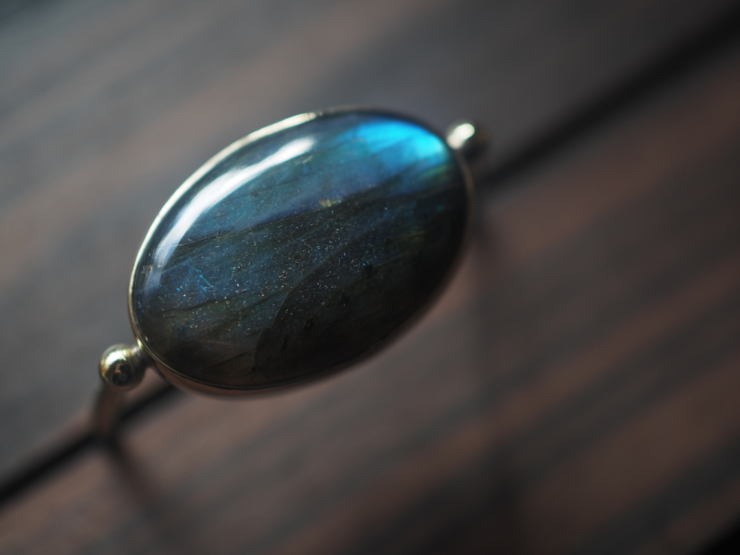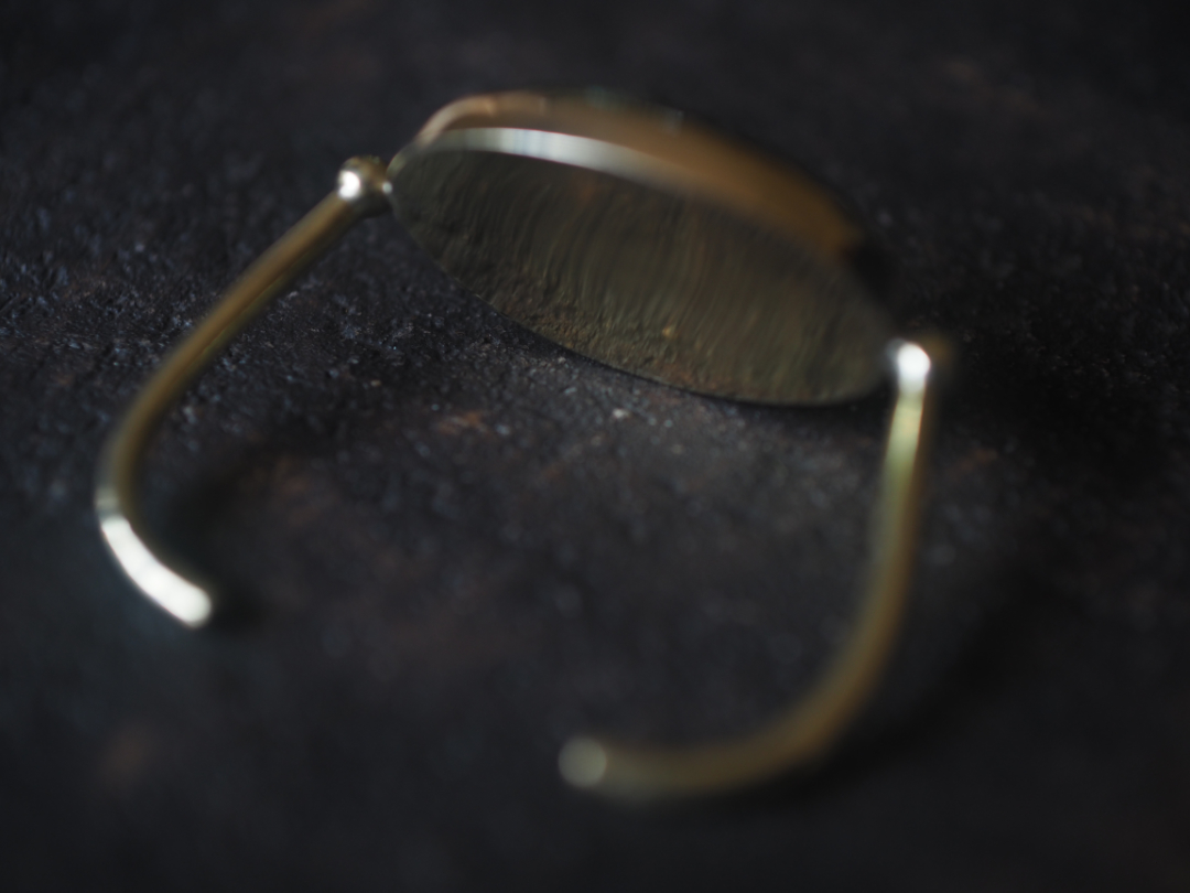 鮮やかな色合いのlabradoriteを真鍮を用いて、bangleに仕立てました。