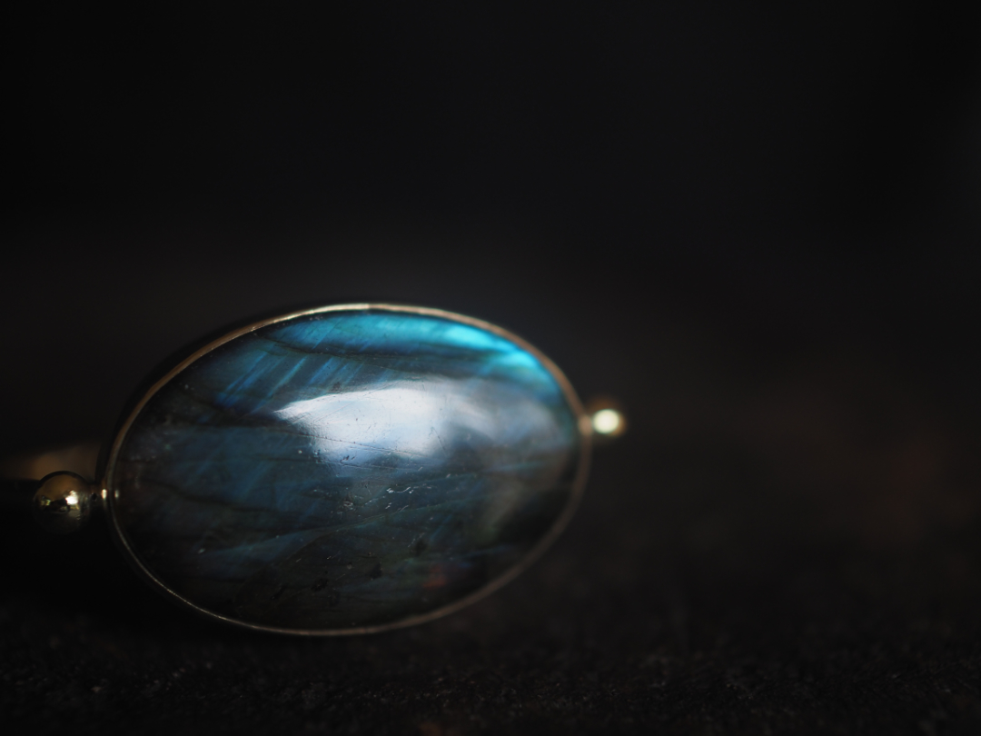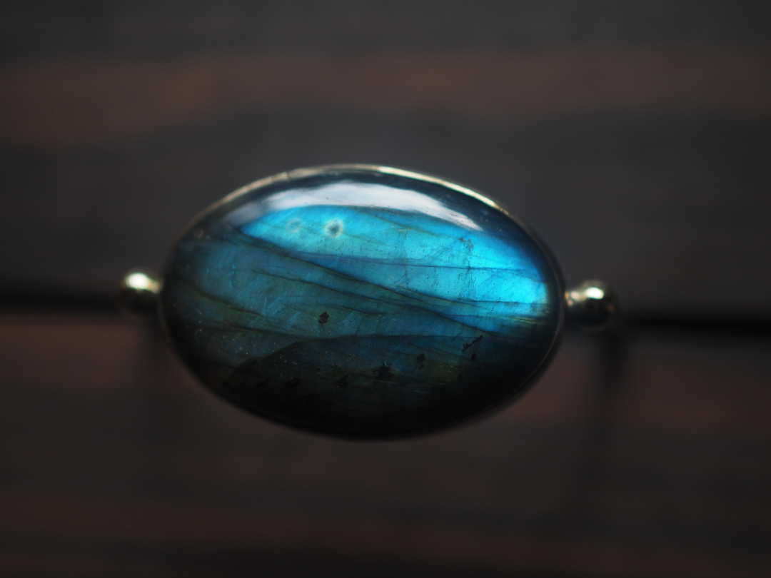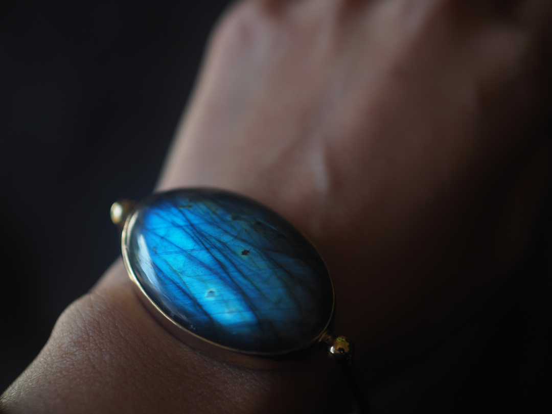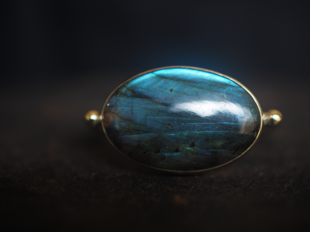 鮮やかな色合いのlabradoriteを真鍮を用いて、bangleに仕立てました。