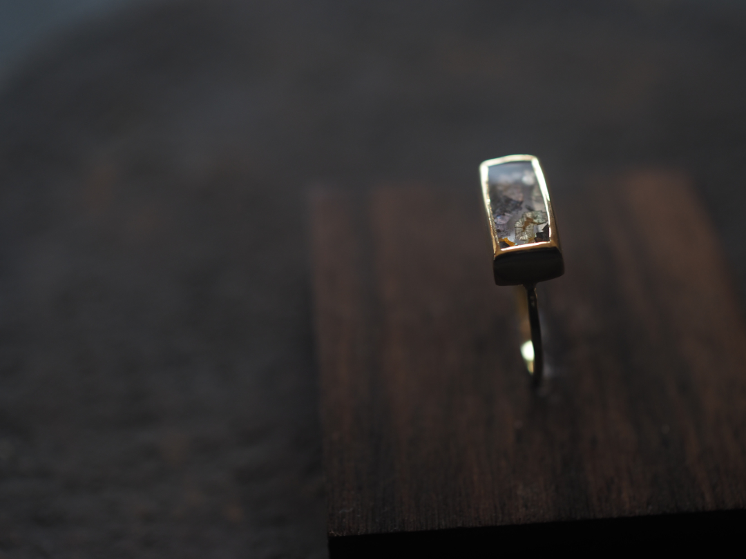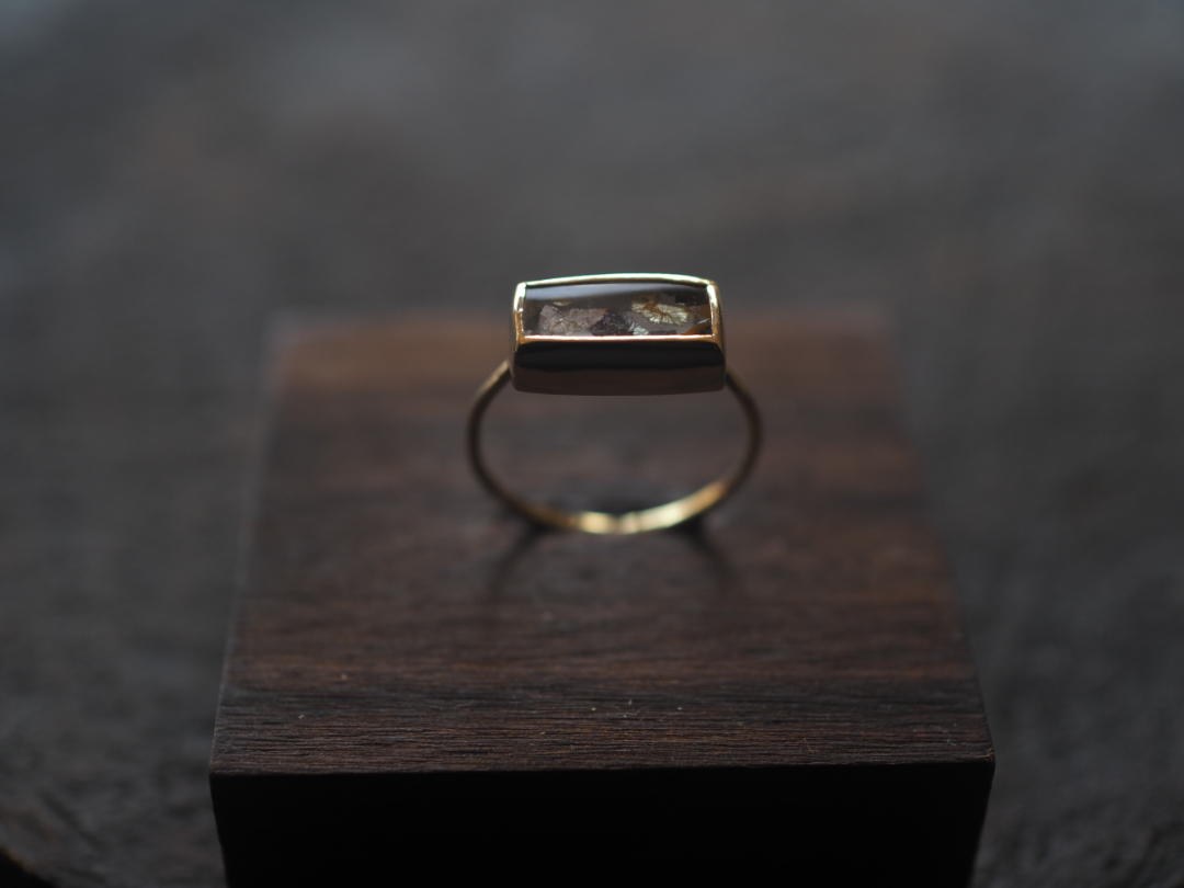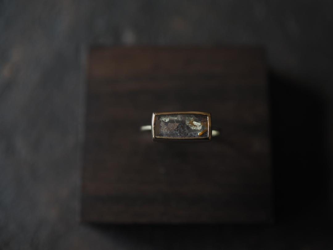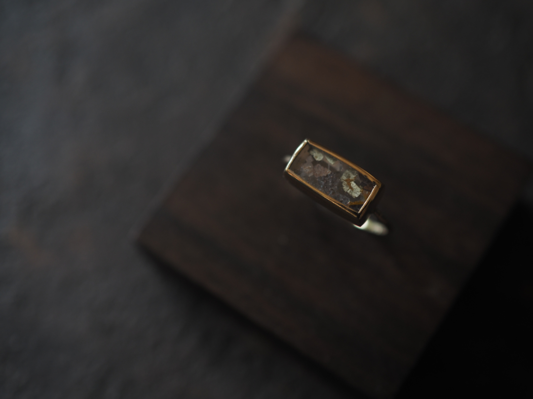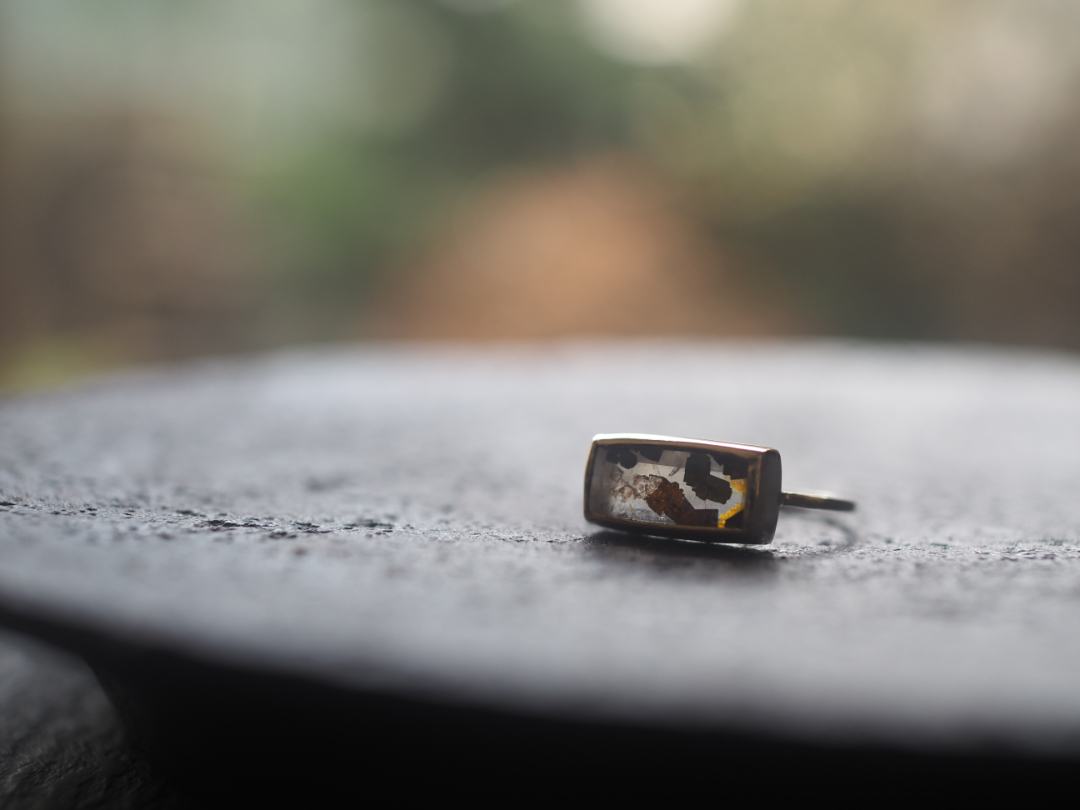 色合い豊かなmarcasite in quartzを真鍮を用いて、ringに仕立てました。