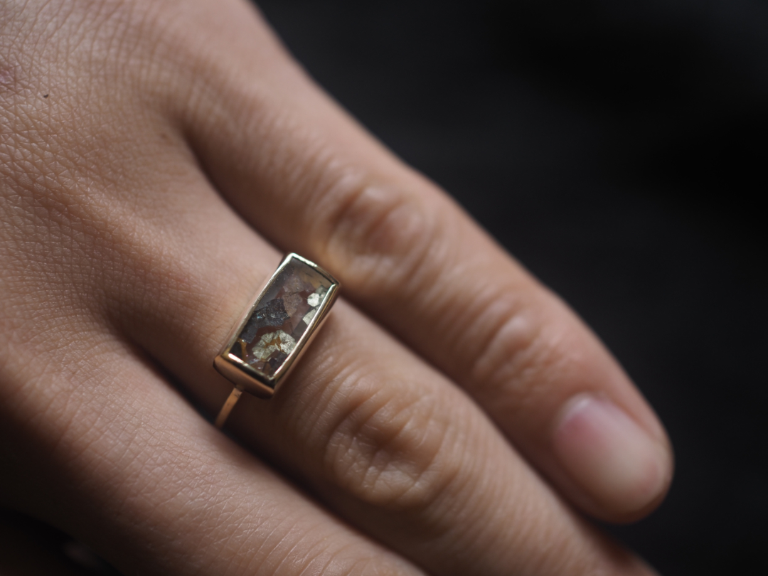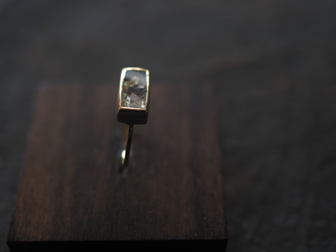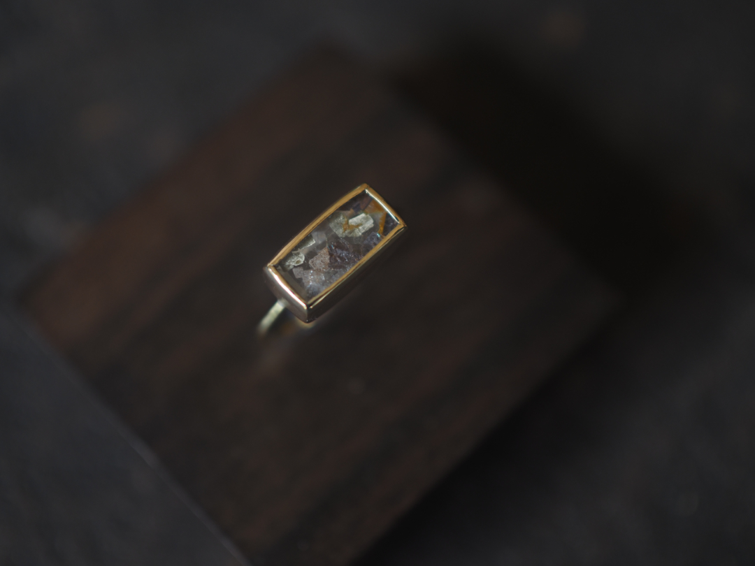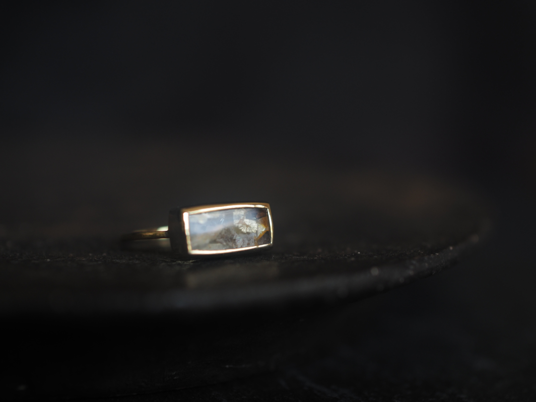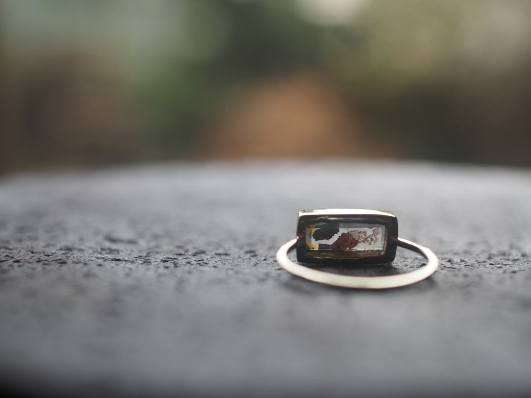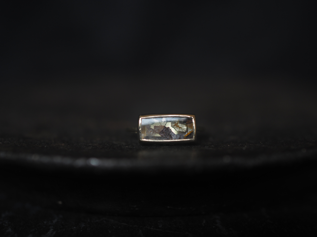 色合い豊かなmarcasite in quartzを真鍮を用いて、ringに仕立てました。