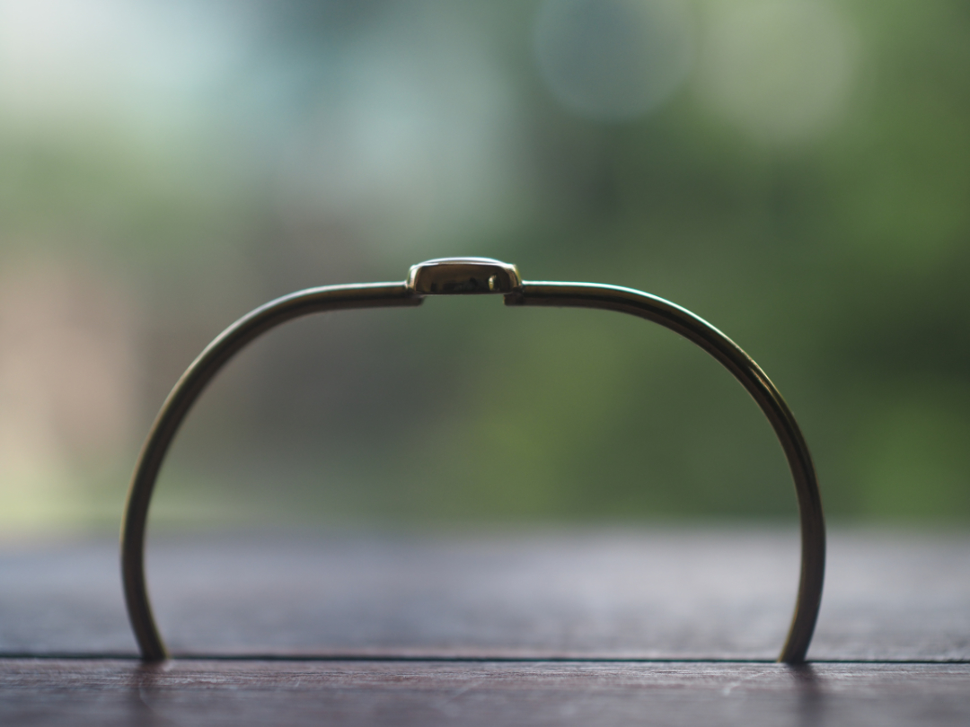 その際、石座部分に負荷がかからないよう石座部分とbangle部分の接続部分を抑えて調節してください。