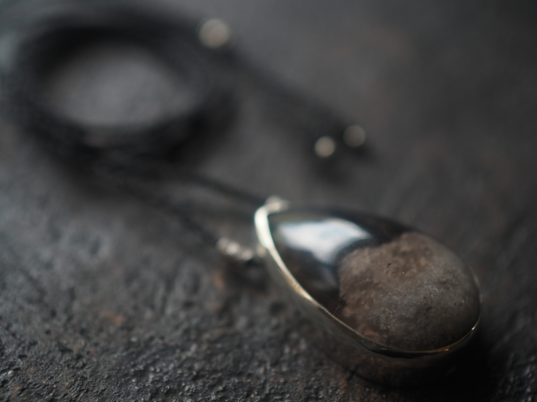 折り重なった内包物が印象的なwhite garden smoky quartzを、