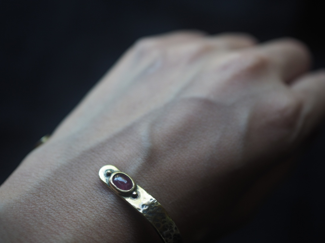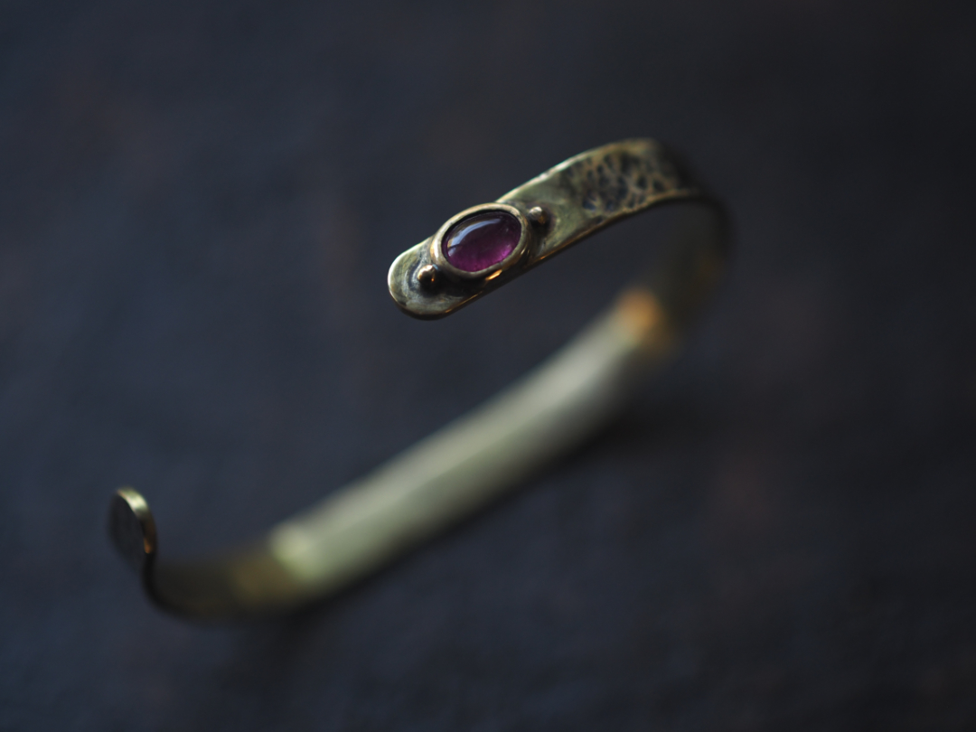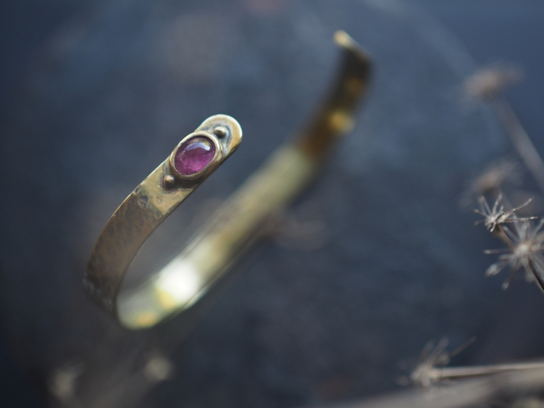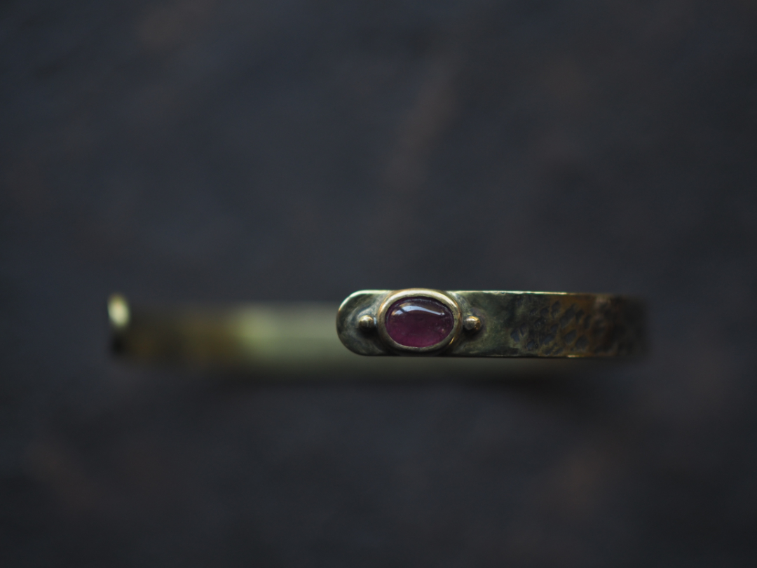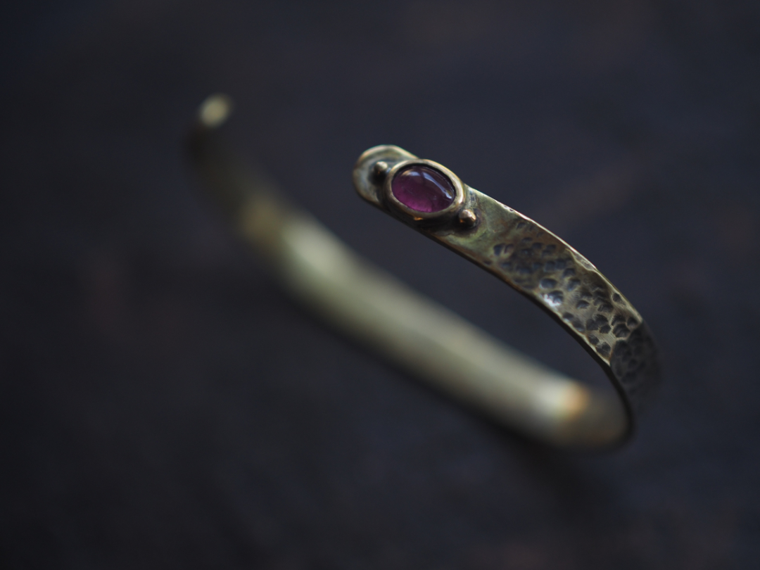 小振りな tourmalineを槌目をつけた真鍮を用いて、