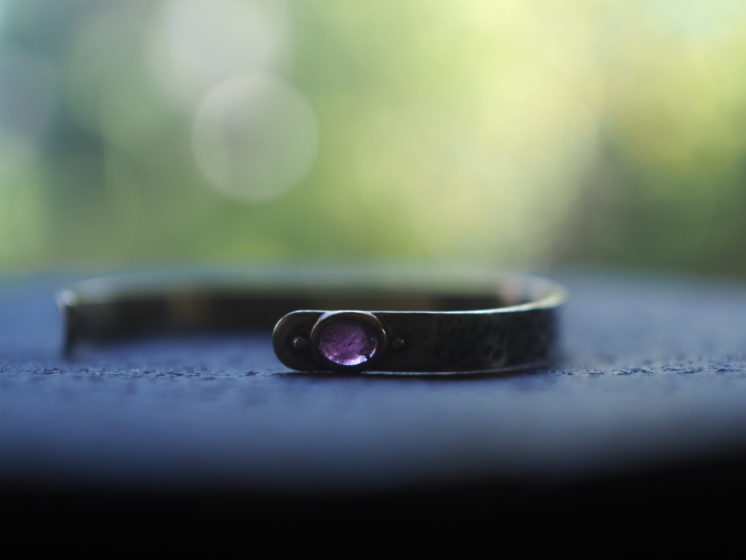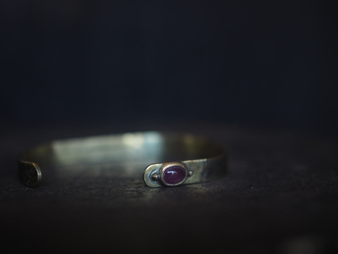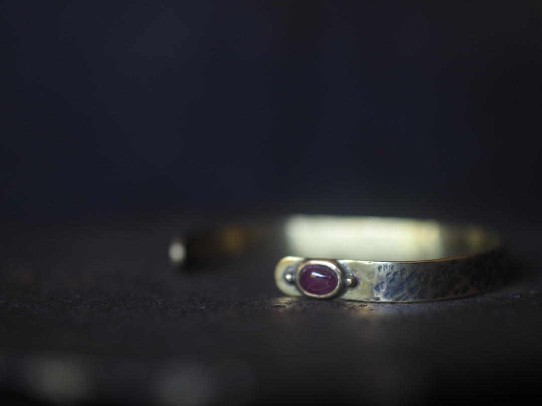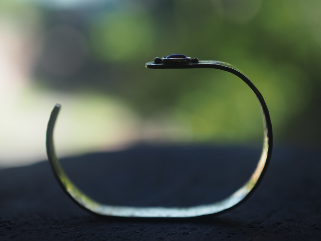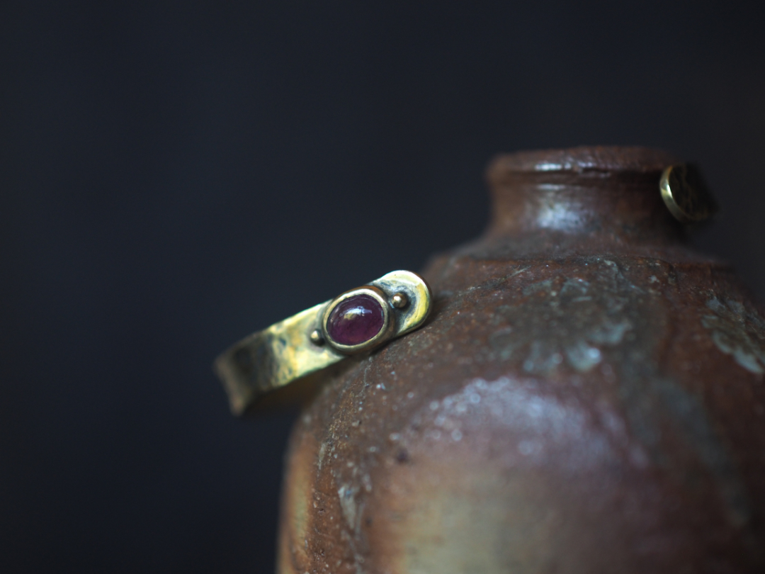 小振りな tourmalineを槌目をつけた真鍮を用いて、
